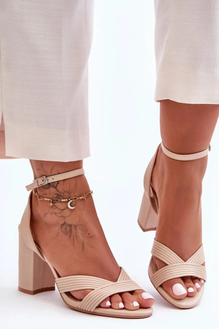 Te klasyczne sandały zostały wykonane z eko skóry. Model ten posiada zapinanie na regulowany pasek ze sprzączką. Sandałki osadzono na obcasie w postaci słupka. Miękka wkładka zapewni komfortowe użytkowanie. Fason ten pięknie prezentuje się na nodze! Przy wyborze rozmiaru prosimy sugerować się tabelą rozmiarów.