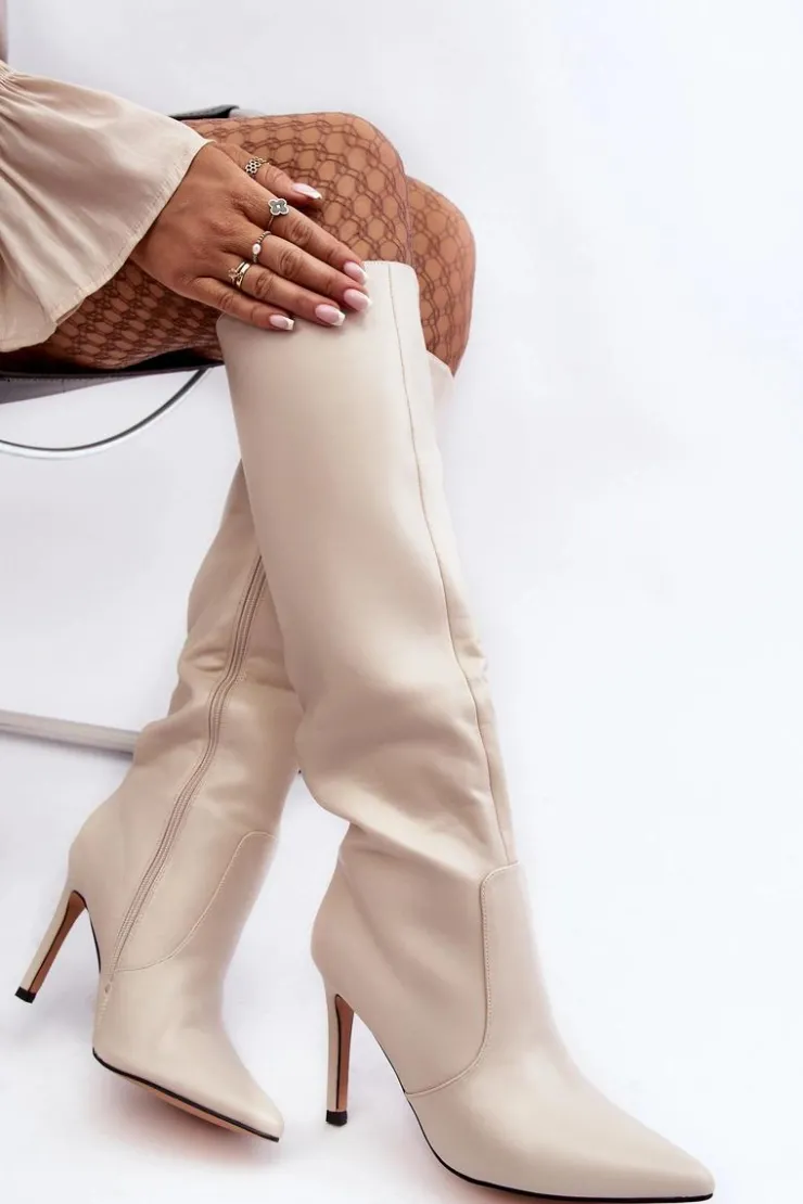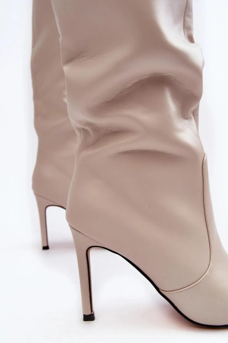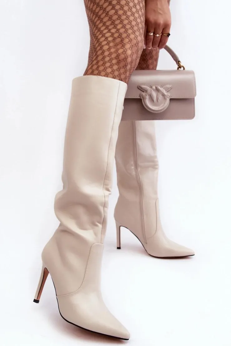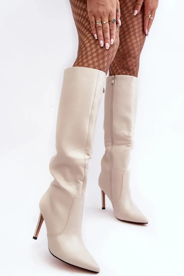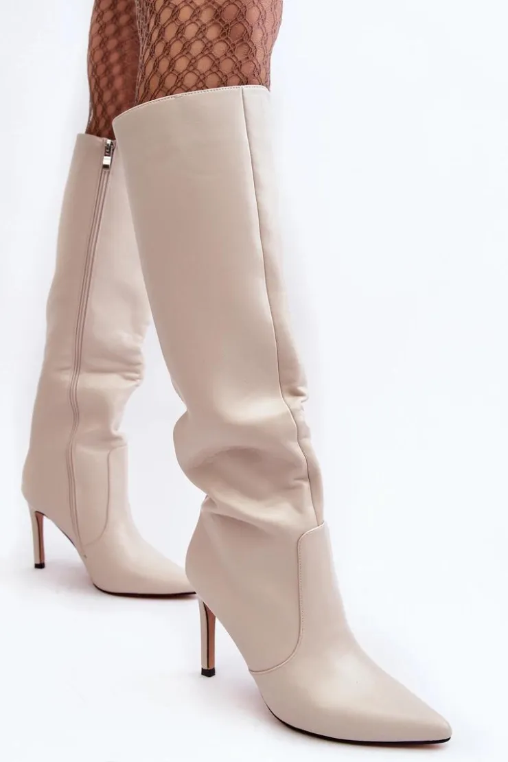 Kozaki damskie zostały wykonane z eko skóry. Posiadają na całej długości suwak ułatwiający zakładanie obuwia. Buty osadzone na obcasie w postaci szpilki. Posiadają ocieplenie w postaci koca obuwniczego. Noski w szpic optycznie wysmuklą nogi. Zapiętek w tych kozakach jest usztywniany. Model ten powinien znaleźć się w Twojej szafie! Przy wyborze rozmiaru prosimy sugerować się tabelą rozmiarów.