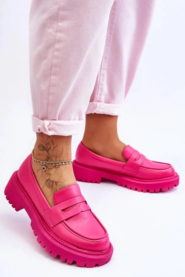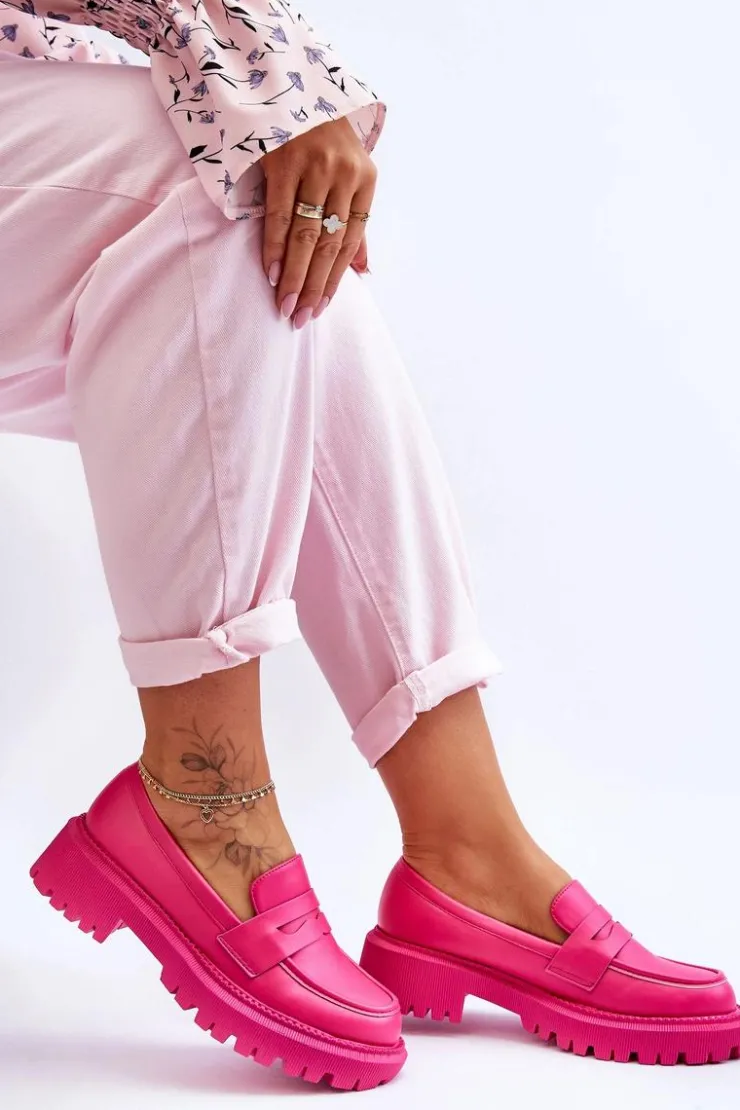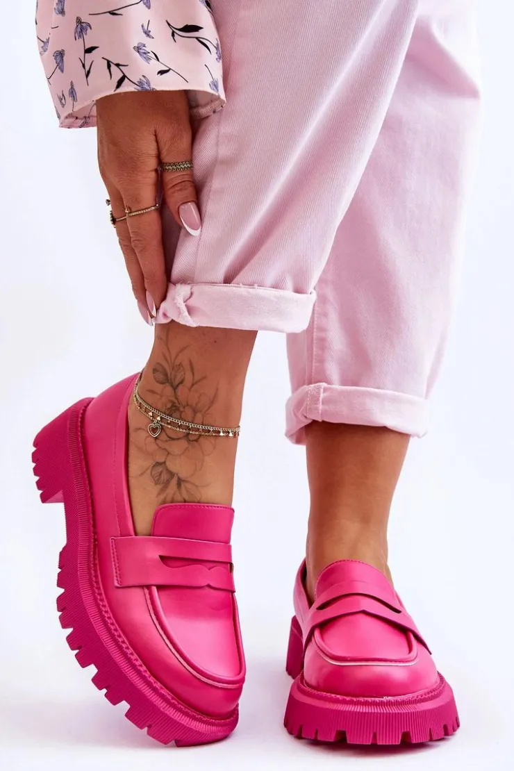 Wygodne, damskie mokasyny zostały wykonane z eko skóry. Model ten posiada na przodzie paseczek z delikatnym wycięciem. Mokasyny osadzono na płaskim, masywnym obcasie oraz platformie. Zapiętek został delikatnie usztywniony. Świetny model do wielu stylizacji w sezonie wiosenno-jesiennym. Przy wyborze rozmiaru prosimy sugerować się tabelą rozmiarów.