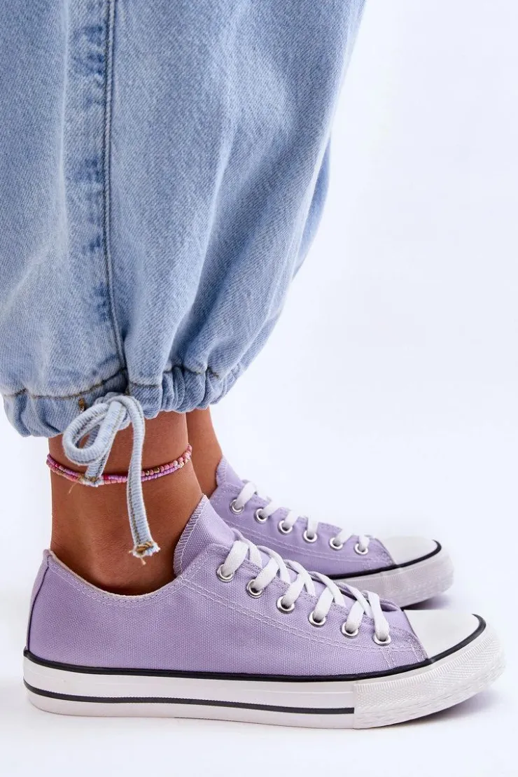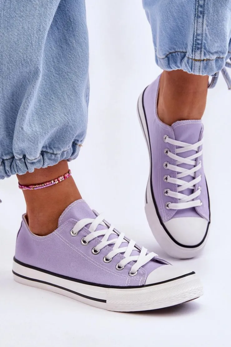 Klasyczne, sznurowane trampki damskie zostały wykonane z materiału tekstylnego. Posiadają gumową podeszwę, która jest dodatkowo antypoślizgowa. Ponadczasowy model, który powinnaś mieć w swojej szafie! Z pewnością założysz je do wielu stylizacji! Nosek został wzmocniony gumowym tworzywem. Wygodna, materiałowa wkładka zapewni komfort podczas użytkowania. Przy wyborze rozmiaru prosimy sugerować się tabelą rozmiarów.