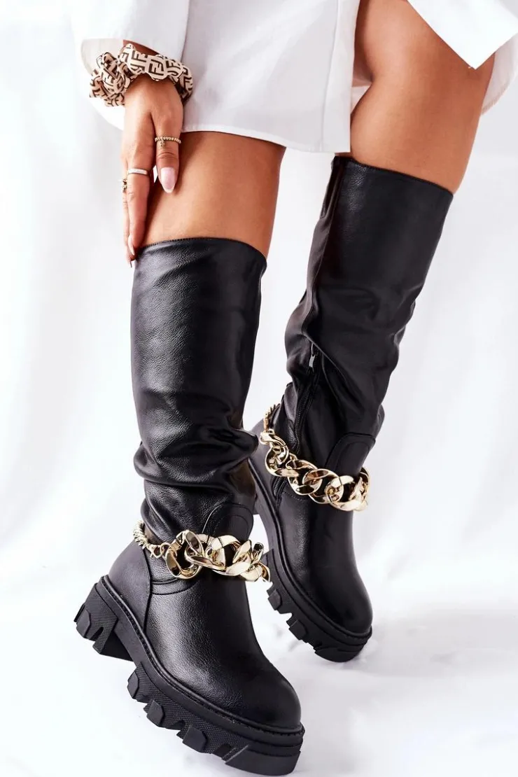 Kozaki do kolana wykonane ze skóry ekologicznej. Wnętrze ocieplane kocem obuwniczym.