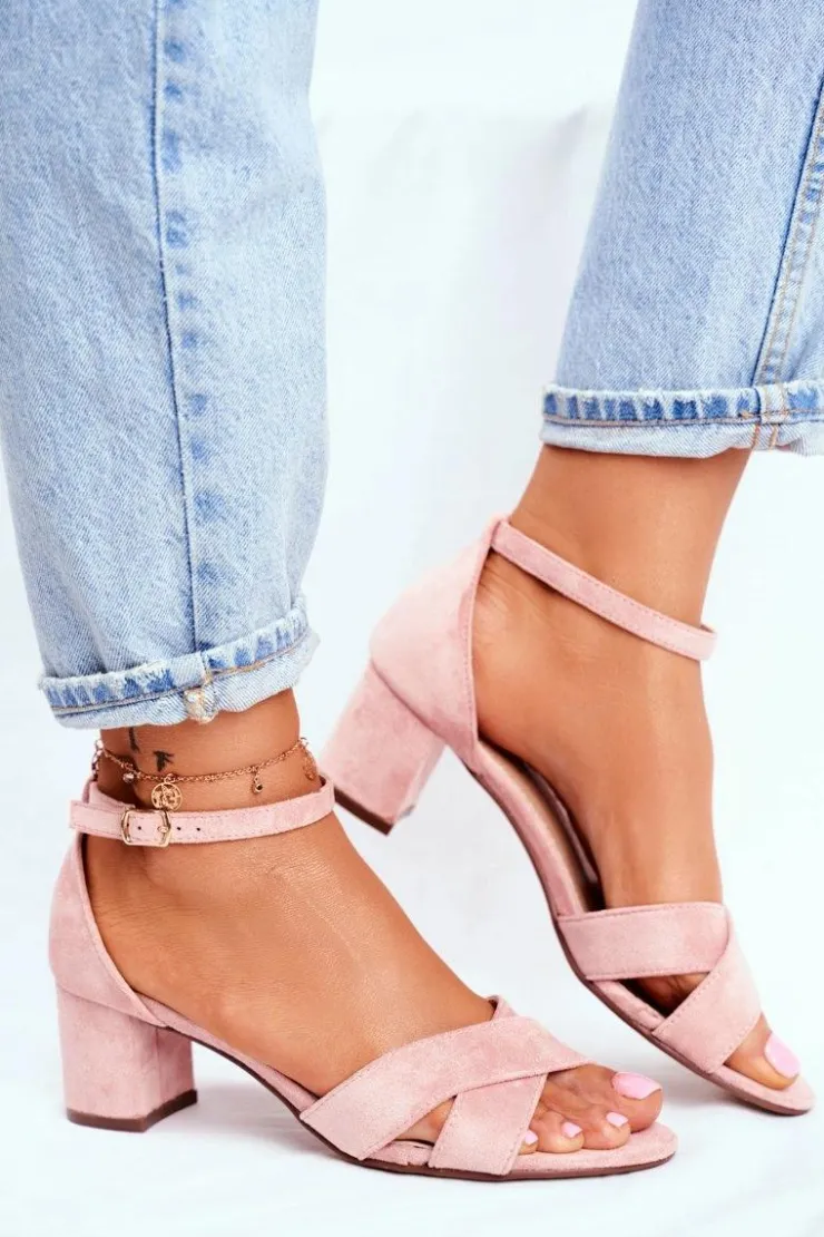 Hot Boto Zamszowe Sandałki na Słupku Różowe Nela