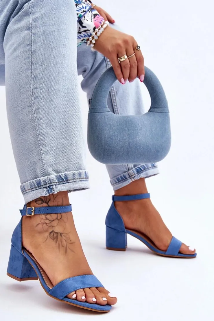 Wyjątkowe sandałki na niewysokim obcasie w postaci stabilnego słupka. Wykonane z przyjemnego w dotyku eko zamszu. Sandałki te posiadają usztywniany zapiętek. Wkładka wykonana z eko skóry zapewni komfortowe użytkowanie. Nosek odkryty, zaokrąglony. Zapinane wokół kostki na regulowany pasek ze sprzączką. Na pewno wykorzystasz je w wielu sytuacjach! Przy wyborze rozmiaru prosimy sugerować się tabelą rozmiarów.