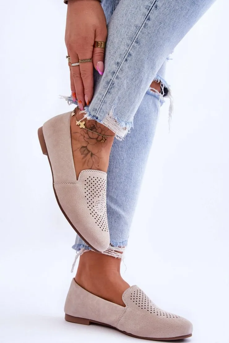 Cudowne mokasyny damskie wykonane z naturalnego zamszu. Na przodzie posiadają ozdobny, ażurowy wzór. Model ten został osadzony na płaskim obcasie i antypoślizgowej podeszwie. Mokasyny posiadają wkładkę Comfort ze skóry naturalnej. Zapiętek w tych butach jest delikatnie usztywniany. Koniecznie powinnaś je mieć! Przy wyborze rozmiaru prosimy sugerować się tabelą rozmiarów.