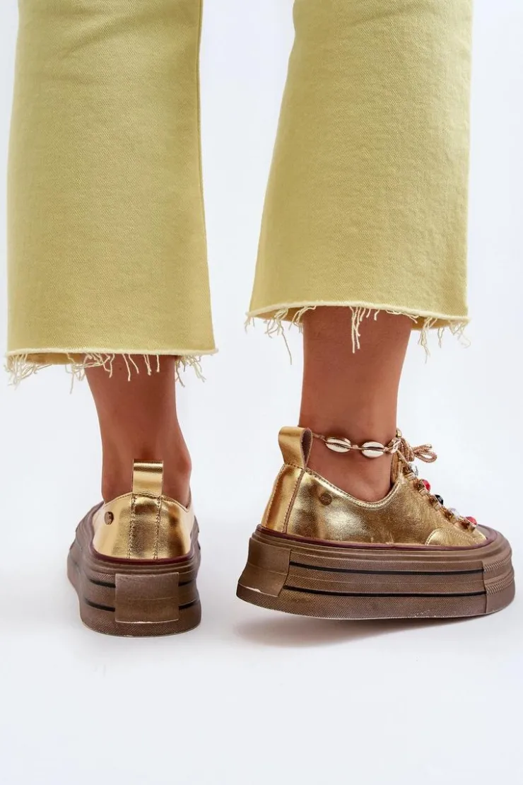 Damskie trampki marki GOE to doskonała propozycja na nadchodzący sezon wiosenno-letni. Wykonane ze skóry naturalnej, zapewniają trwałość i komfort noszenia. Miękka wkładka, którą można dodatkowo wyciągnąć, gwarantuje dodatkowy poziom wygody. Masywna podeszwa zapewnia doskonałą amortyzację, co sprawia, że te buty są idealnym wyborem zarówno na co dzień, jak i na bardziej formalne okazje. Przy wyborze rozmiaru prosimy sugerować się tabelą rozmiarów.
