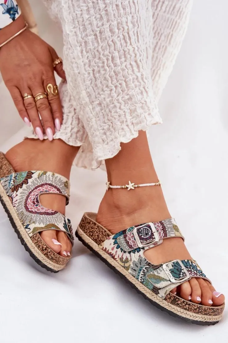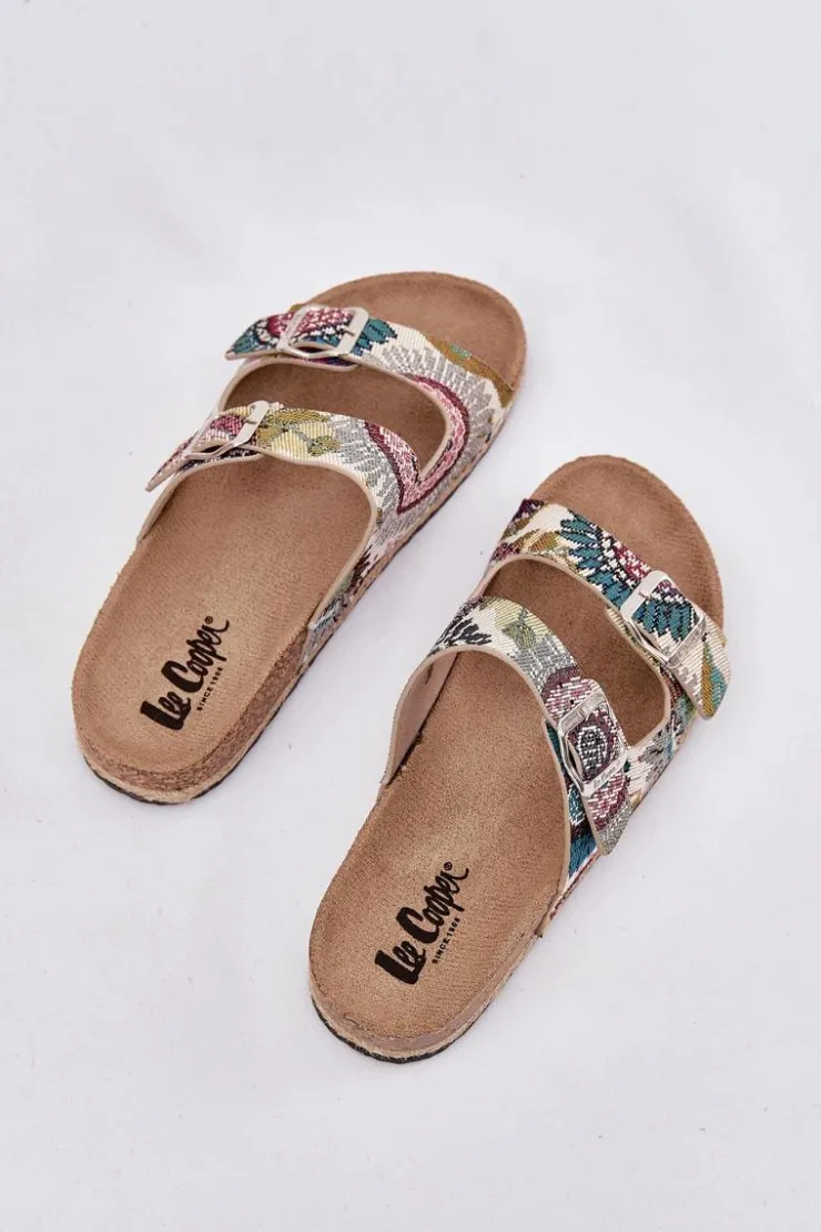 Damskie klapki marki Lee Cooper, osadzone na korkowej platformie z plecionką, to stylowa opcja na ciepłe dni. Model wyróżnia się dwoma regulowanymi paskami z klamrami z przodu, które zapewniają idealne dopasowanie do stopy. Profilowana wkładka gwarantuje komfort przez cały dzień, dbając o odpowiednią amortyzację. Te klapki to doskonały wybór do letnich stylizacji! Przy wyborze rozmiaru prosimy sugerować się tabelą rozmiarów.
