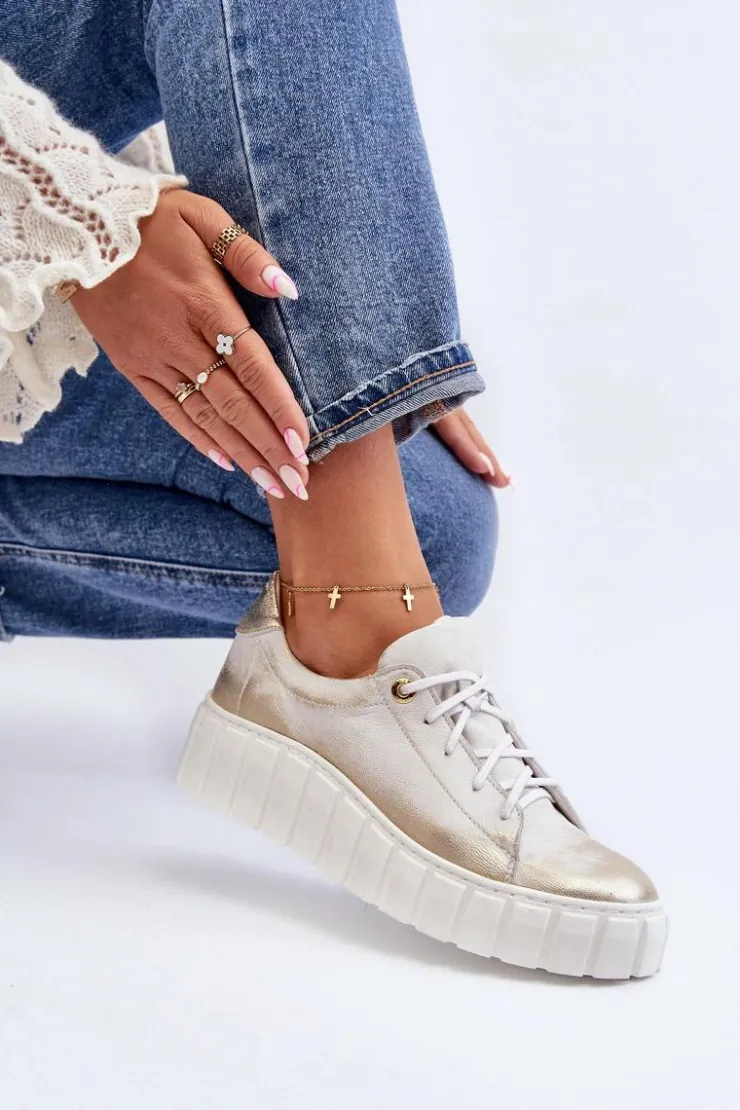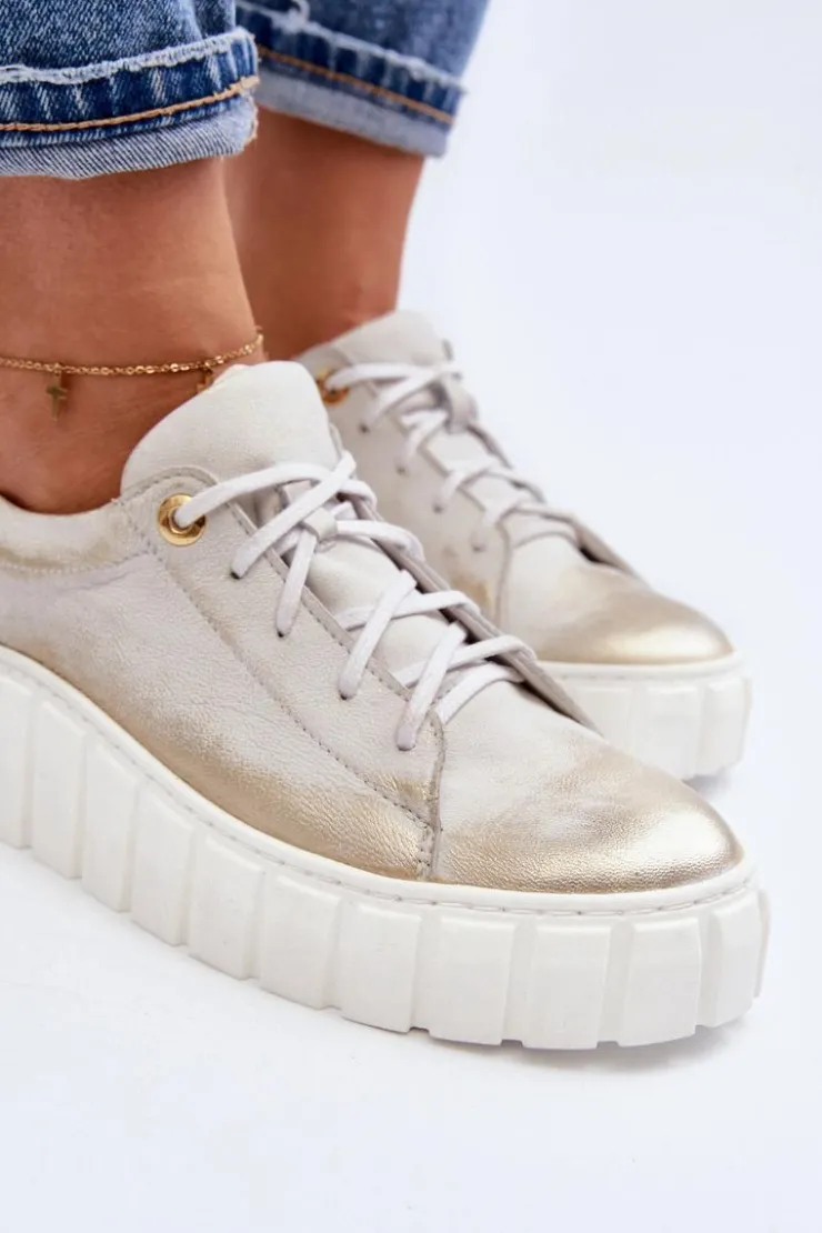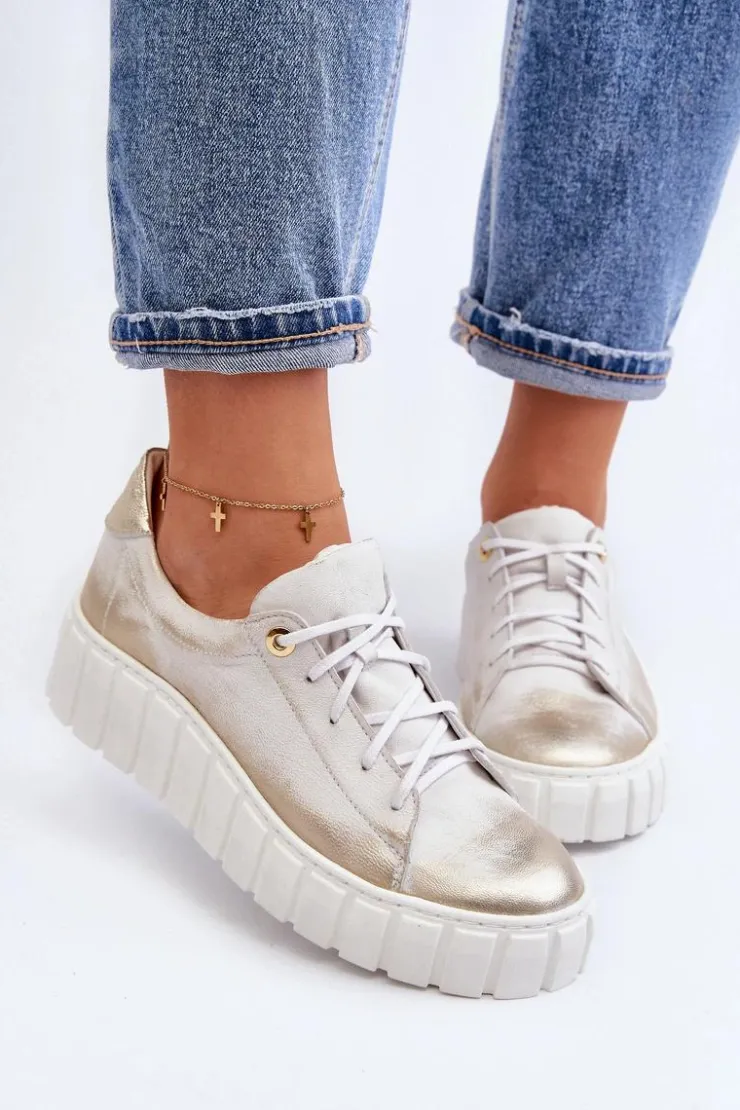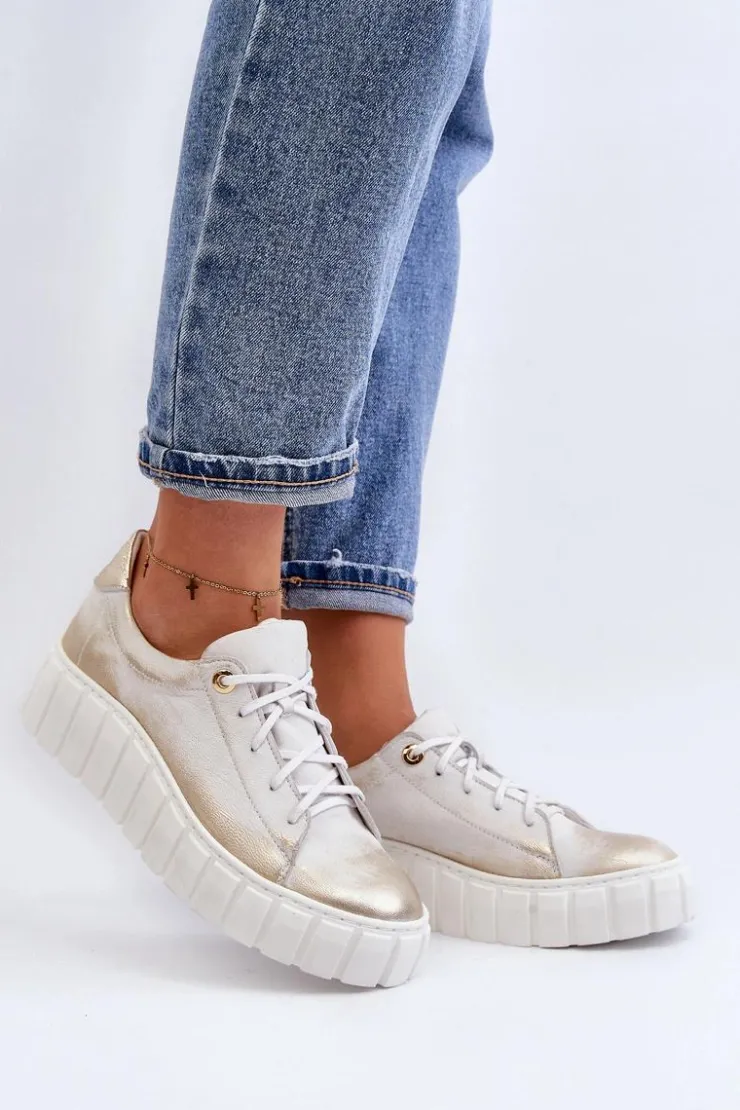 Półbuty damskie wykonane ze skóry naturalnej. Osadzone na grubej podeszwie z gumowego tworzywa. Model klasycznie sznurowany. Noski zaokrąglone. Miękka wkładka ze skóry naturalnej zapewni komfort podczas użytkowania. Idealne do wielu stylizacji. Koniecznie powinnaś je mieć! Przy wyborze rozmiaru prosimy sugerować się tabelą rozmiarów.