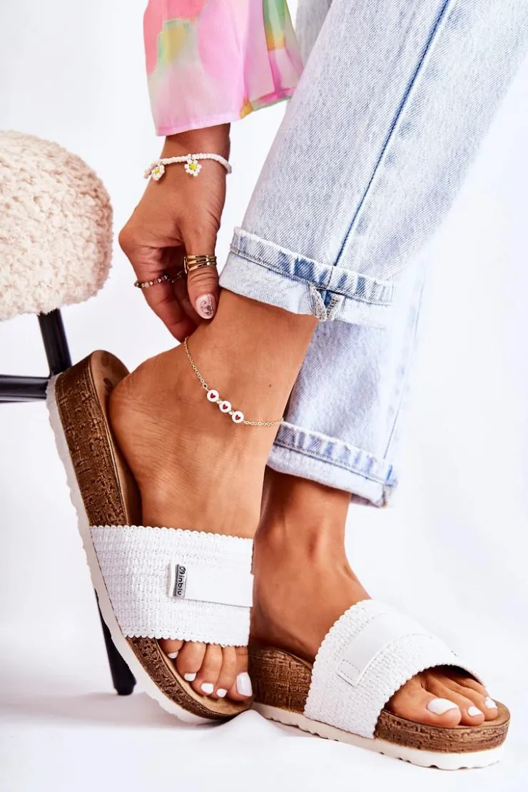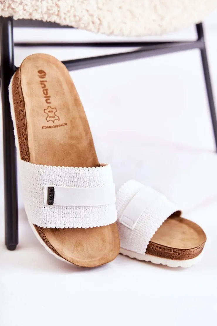 Modne klapki od marki INBLU. Wykonane z wierzchu z połączenia wysokiej jakości eko skóry oraz tworzywa sztucznego. Model wsuwany. Wkładka jest profilowana, dostosowana do anatomicznego kształtu stopy, a także wykonana z naturalnego zamszu. Podeszwa wraz z platformą wykonana jest z połączenia pianki oraz tworzywa sztucznego. Dzięki zastosowaniu odpowiedniej technologii i materiałów, klapki zapewniają wysoki komfort użytkowania i wygodę. Przy wyborze rozmiaru prosimy sugerować się tabelą rozmiarów.