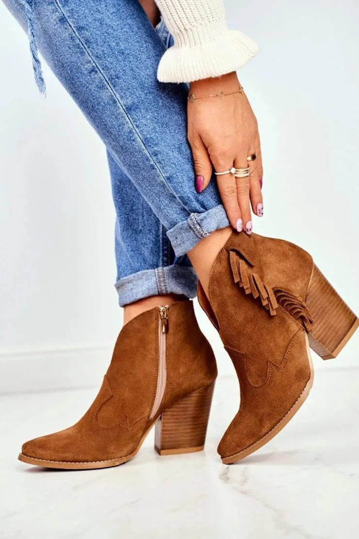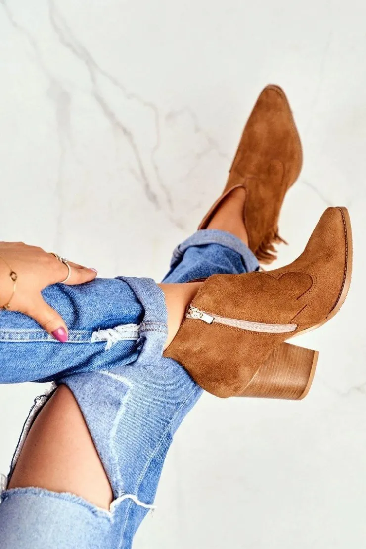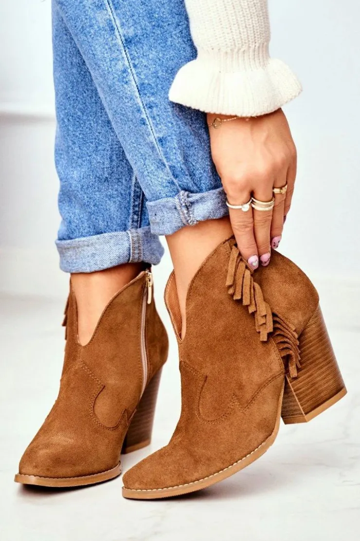 Laura Messi Botki Wiosenne|Botki Na Słupku*Botki Damskie Skórzane na Obcasie Camel 2133