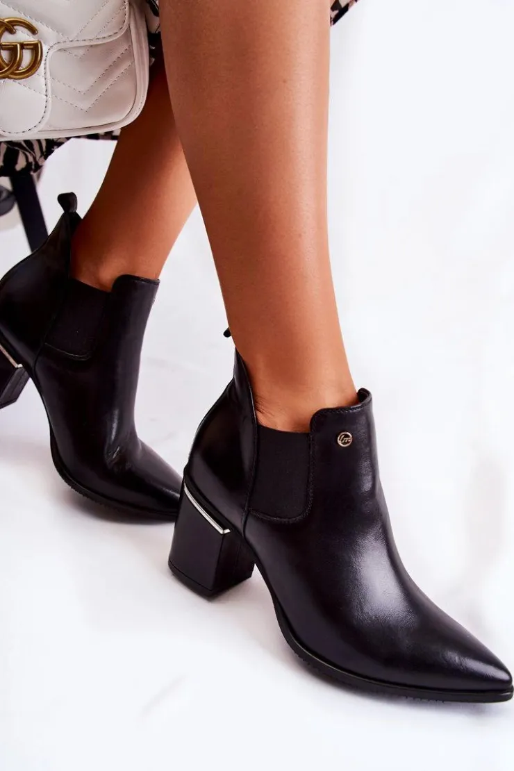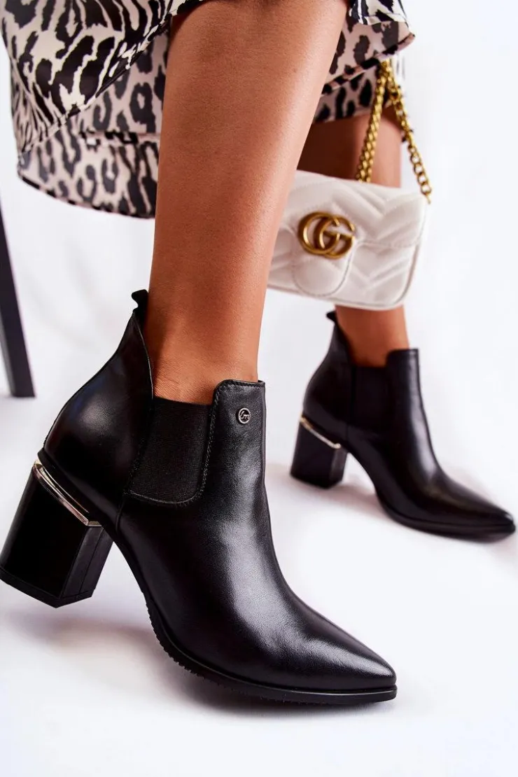 Eleganckie botki świetnie sprawdzą się podczas tworzenia stylizacji w chłodniejsze dni. Botki są wsuwane, z elastycznymi gumkami po bokach cholewki. W całości wykonane ze skóry naturalnej. Atutami tych botków jest przede wszystkim komfort noszenia oraz wysoka jakość wykonania. Dodatkowo posiadają usztywniany zapiętek oraz ozdobny obcas w postaci słupka. Przy wyborze rozmiaru prosimy sugerować się tabelą rozmiarów.