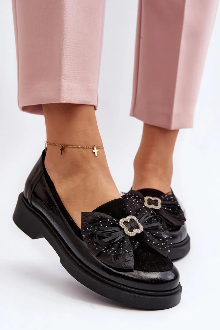 Mokasyny damskie wykonane ze skóry naturalnej. Ozdobione dużą kokardą z przodu. Osadzone na płaskim obcasie. Noski zaokrąglone. Miękka, skórzana wkładka zapewni wygodę podczas użytkowania. Ten niezwykle modny fason idealnie uzupełni wiele wiosennych stylizacji! Przy wyborze rozmiaru prosimy sugerować się tabelą rozmiarów.