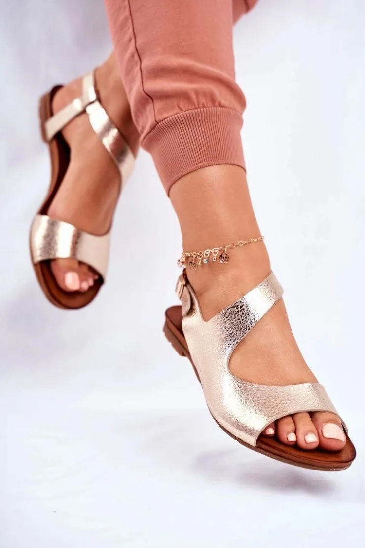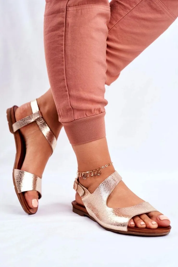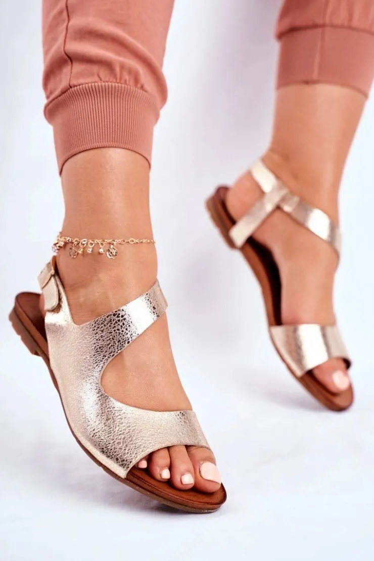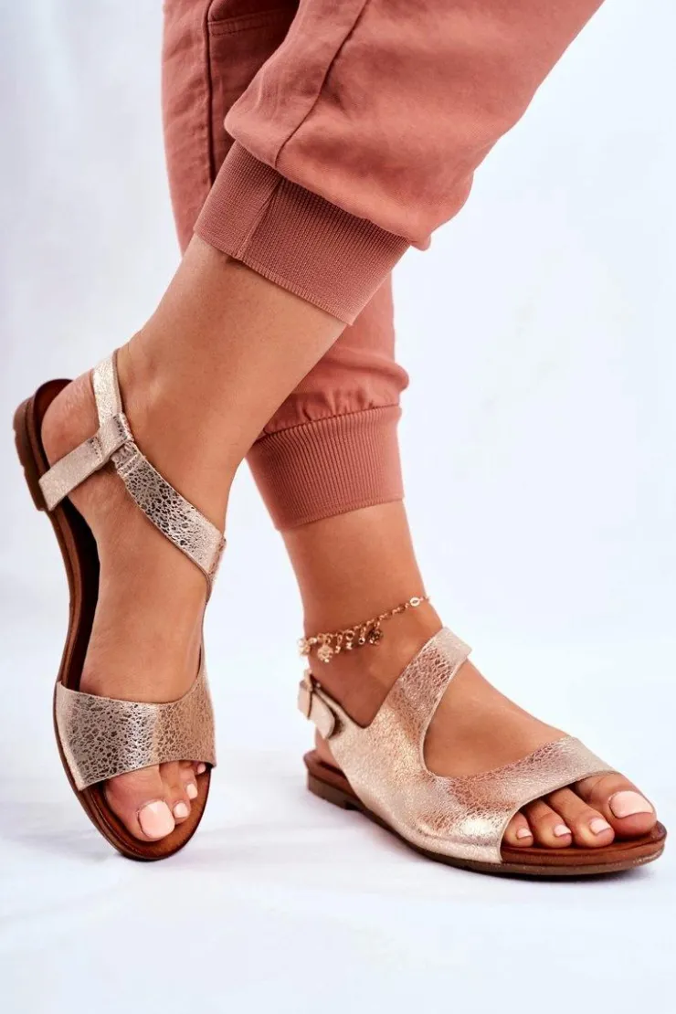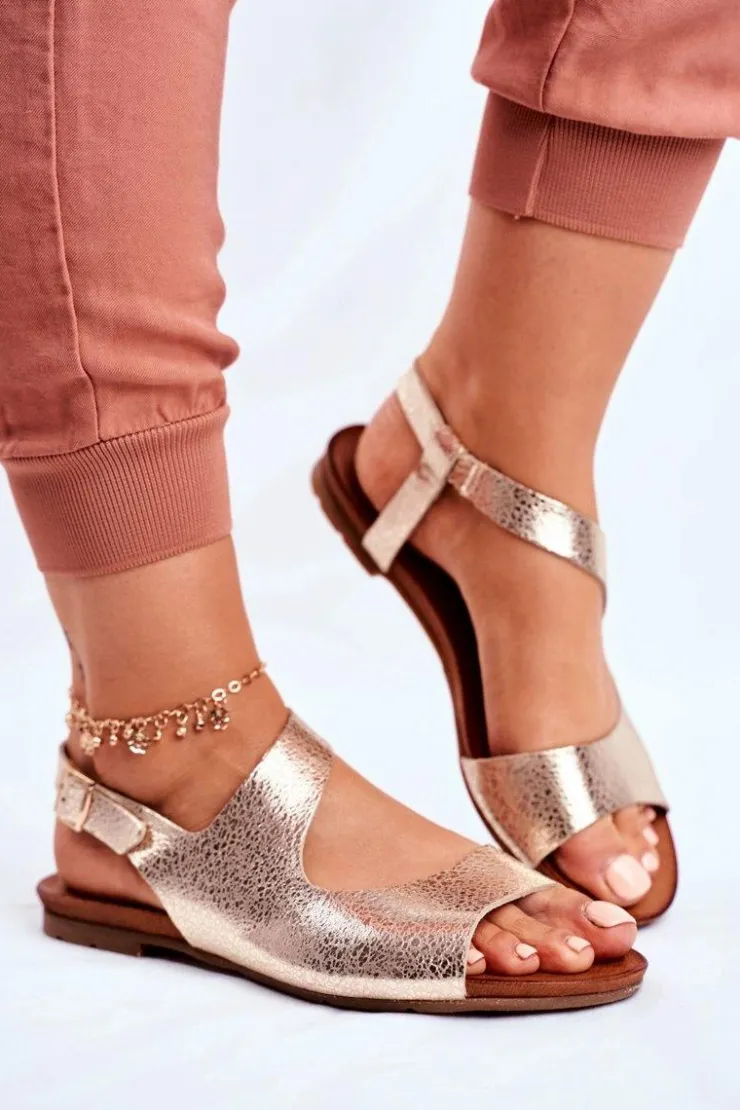 Laura Messi Sandały Płaskie*Damskie Sandały Skórzane 1116 Snake Złote Vollare
