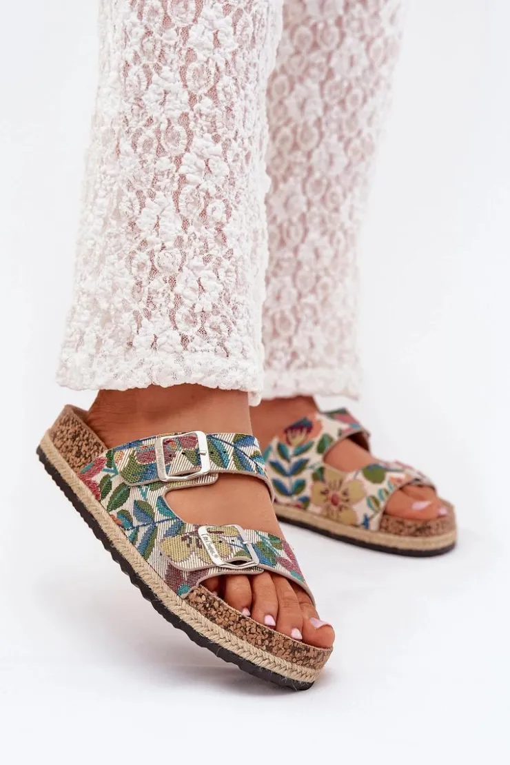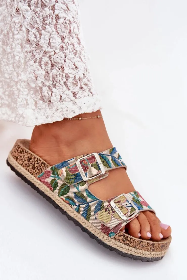 Damskie klapki marki Lee Cooper, osadzone na korkowej platformie z plecionką, to stylowa opcja na ciepłe dni. Model wyróżnia się dwoma regulowanymi paskami z klamrami z przodu, które zapewniają idealne dopasowanie do stopy. Profilowana wkładka gwarantuje komfort przez cały dzień, dbając o odpowiednią amortyzację. Te klapki to doskonały wybór do letnich stylizacji! Przy wyborze rozmiaru prosimy sugerować się tabelą rozmiarów.