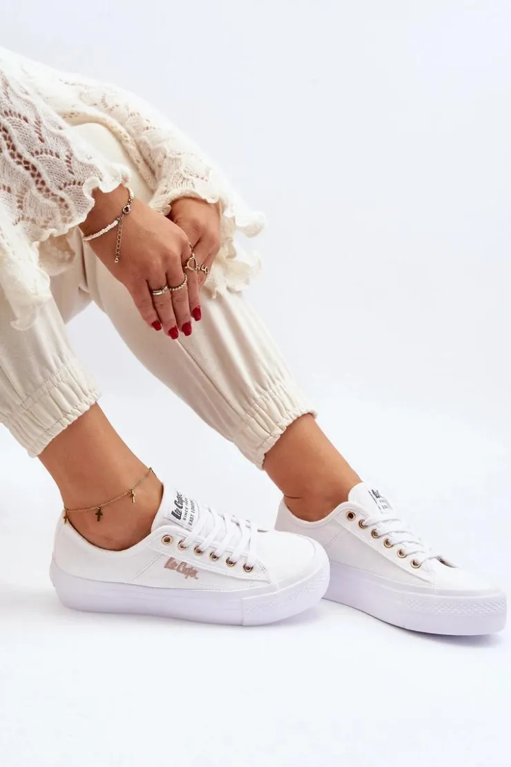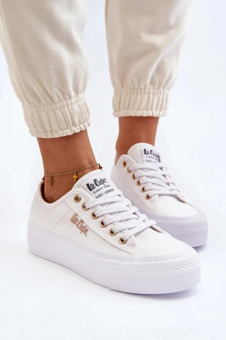 Trampki na masywnej platformie marki Lee Cooper to odpowiedni wybór dla osób ceniących sobie wygodę oraz styl! Wykonane z materiału tekstylnego. Z boku małe logo marki. Miękka wkładka zapewni komfort podczas użytkowania. Idealne do wielu stylizacji. Koniecznie sprawdź także pozostałe obuwie marki Lee Cooper dostępne w naszej ofercie! Przy wyborze rozmiaru prosimy sugerować się poniższą tabelą rozmiarów.