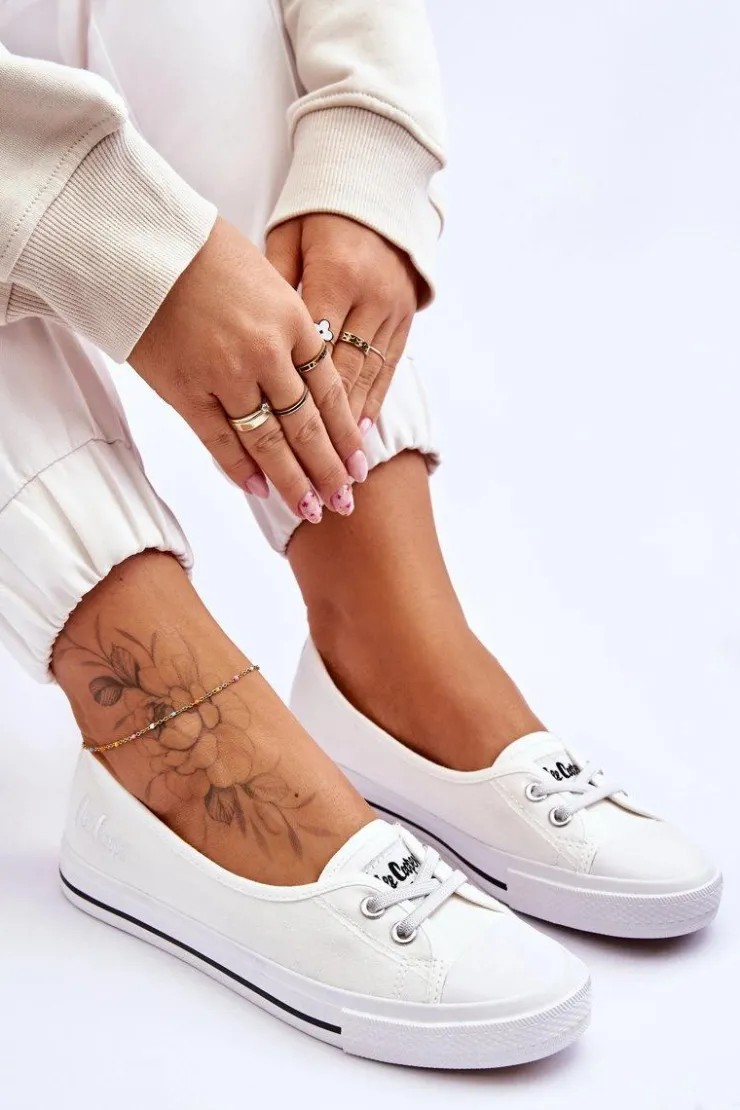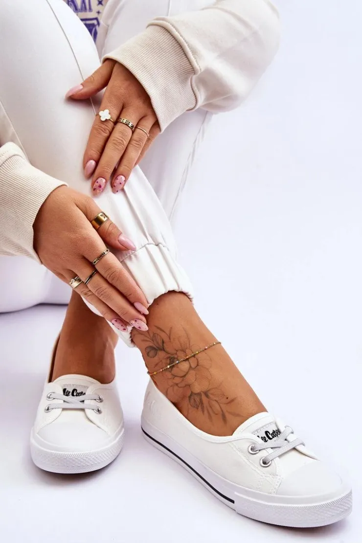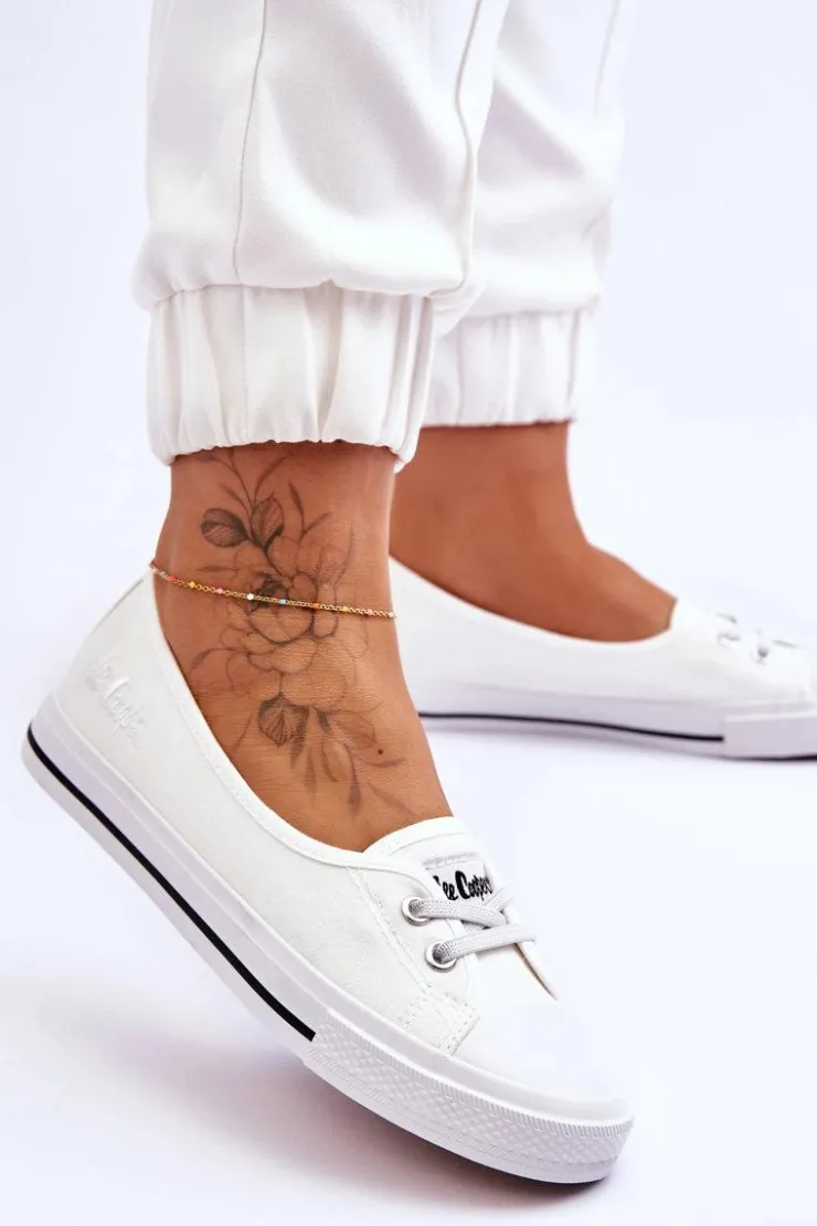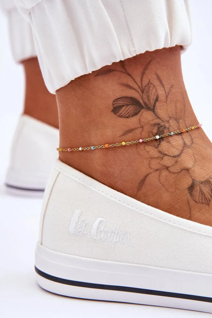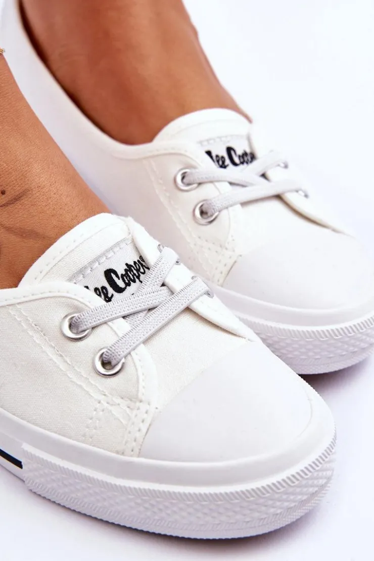 Niskie tenisówki damskie od marki Lee Cooper. Zostały wykonane z materiału tekstylnego ze wzmacnianym noskiem. Osadzone na platformie i antypoślizgowej podeszwie wykonanej z gumowego tworzywa. Model ten posiada elastyczne gumki. Usztywniany zapiętek oraz materiałowa wkładka zapewnią wygodę podczas użytkowania. Przy wyborze rozmiaru prosimy sugerować się poniższą tabelą rozmiarów.