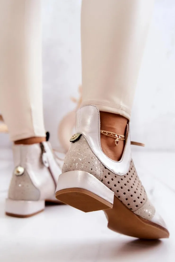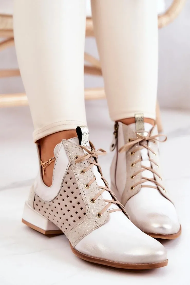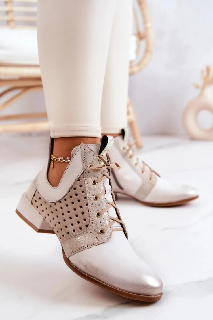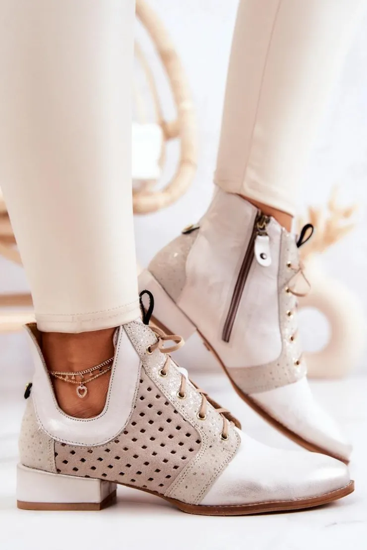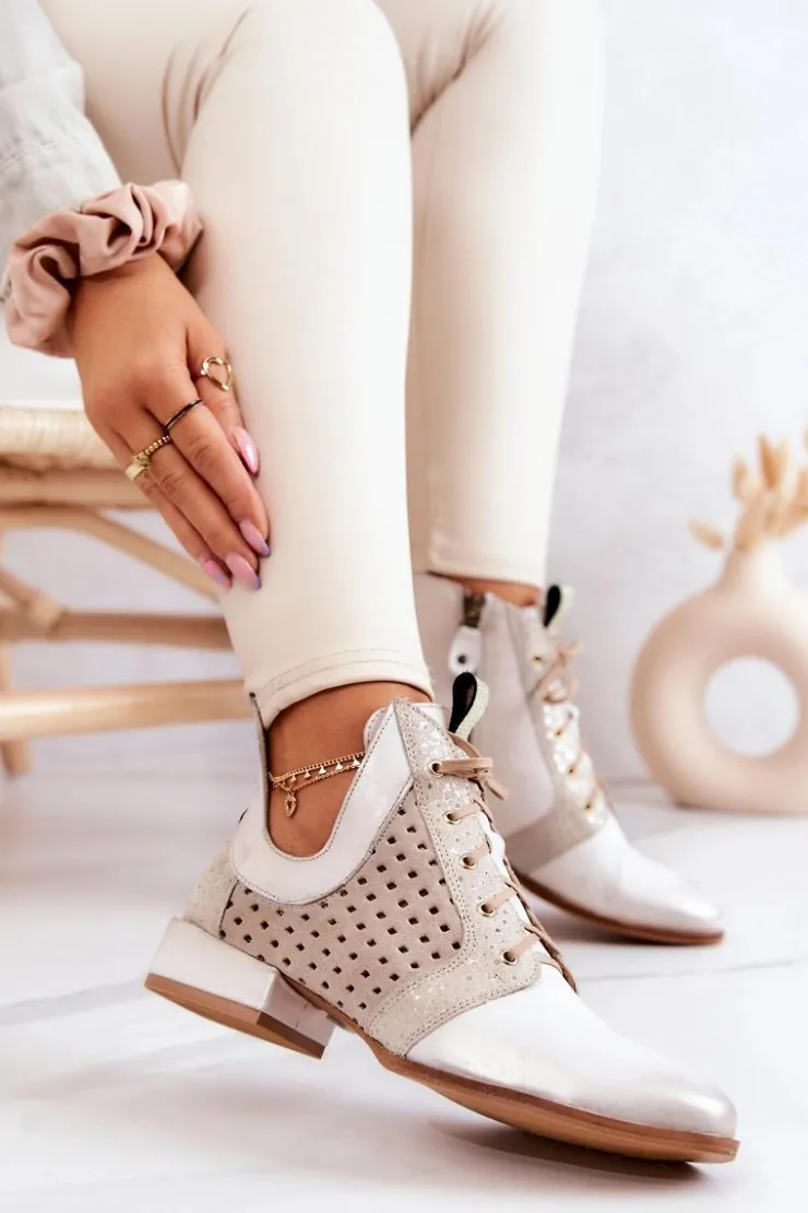 Prezentowane botki firmy Maciejka wykonane są z naturalnej skóry. Niski, stabilny obcas sprawia, że buty są bardzo wygodne. Botki posiadają wiązanie, dzięki któremu można odpowiednio dopasować je do tęgości nogi. Z boku cholewki znajduje się zamek. Miękka, delikatnie perforowana wkładka zapewni wygodę podczas użytkowania. Wycięcie na kostkę wygląda niezwykle efektownie. Przy wyborze rozmiaru prosimy sugerować się tabelą rozmiarów.