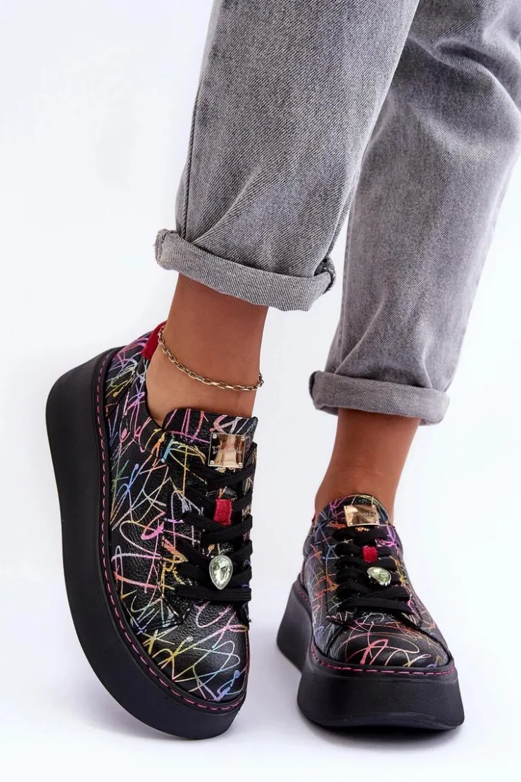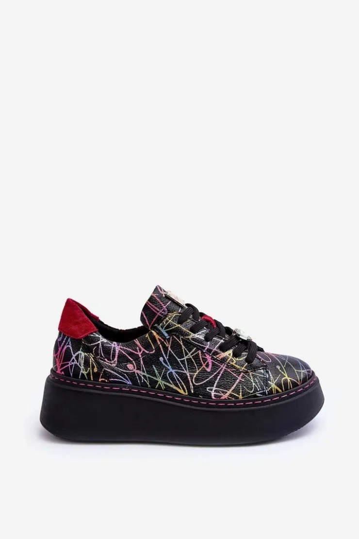 Buty sportowe marki Maciejka. Wykonane z naturalnej skóry z dbałością o szczegóły. Osadzone na masywnej platformie. Model klasycznie sznurowany z usztywnionym zapiętkiem. Noski zaokrąglone. Miękka, wkładka zapewni komfort podczas użytkowania. Na sznurówkach przypięta jest mała, biżuteryjna ozdoba. Przy wyborze rozmiaru prosimy sugerować się tabelą rozmiarów.