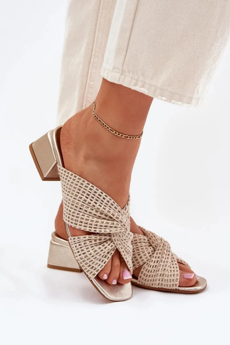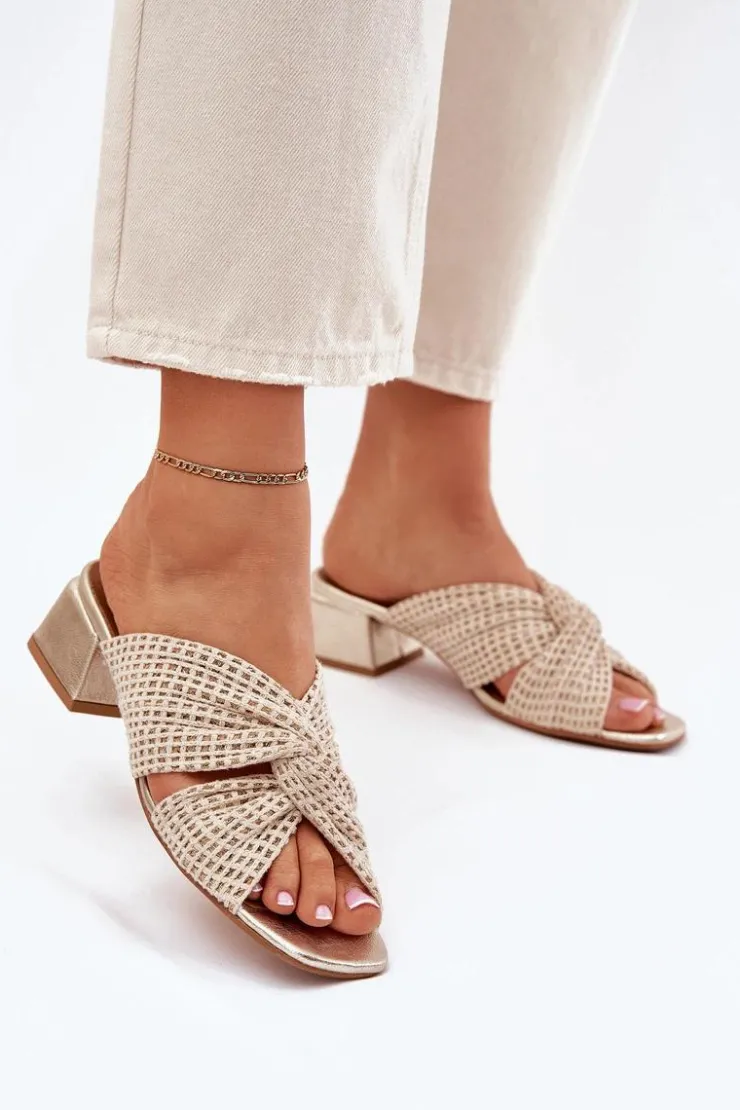 Klapki damskie od marki Maciejka, wykonane z materiału tekstylnego, to elegancka propozycja na ciepłe dni. Osadzone na obcasie w formie klocka, zapewniają stabilność i komfort przez cały dzień. Ich stylowy design doskonale łączy elegancję z wygodą, sprawiając, że idealnie pasują do zarówno casualowych, jak i bardziej formalnych stylizacji. Przy wyborze rozmiaru prosimy sugerować się tabelą rozmiarów.