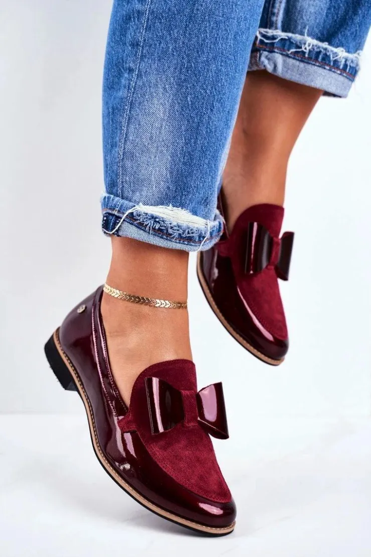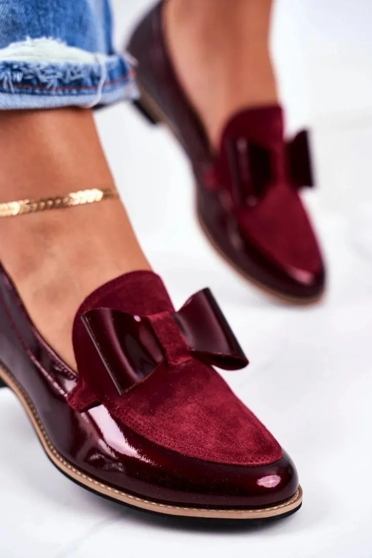 Maciejka Półbuty Lakierowane|Półbuty Skórzane*Damskie Półbuty Lakierowane Loafery Bordowe 04099-44/00-1