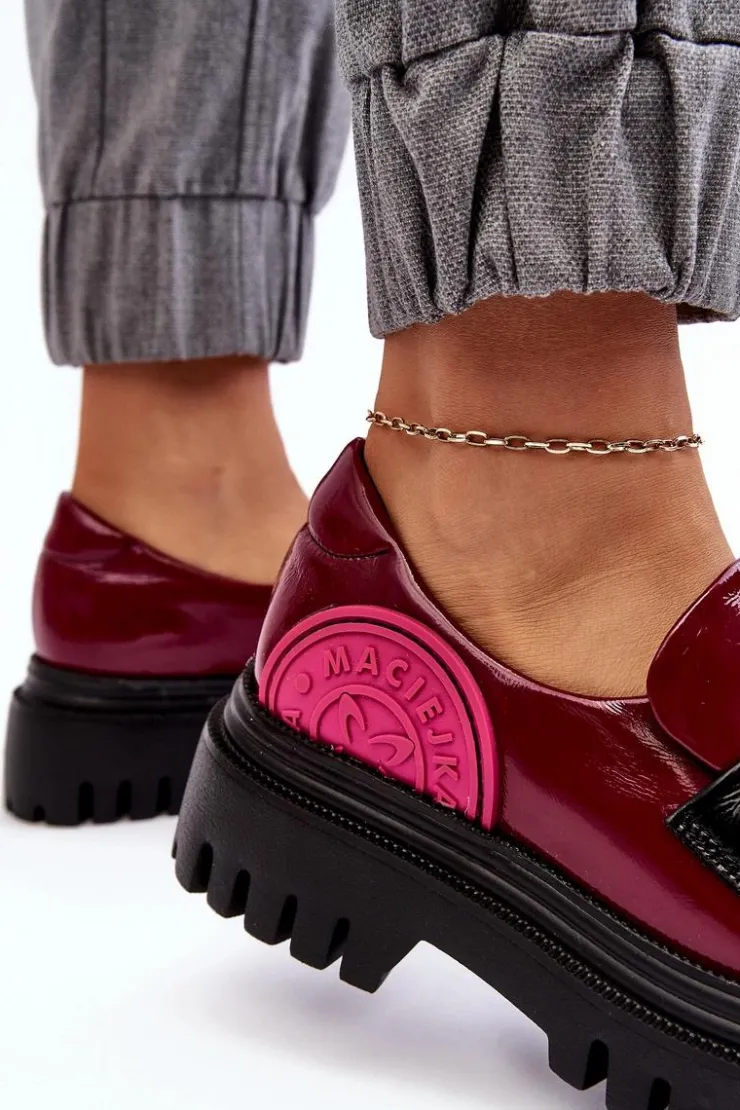 Półbuty damskie marki Maciejka zostały wykonane z wysokiej jakości skóry naturalnej. Osadzone na płaskim obcasie i platformie. Z przodu na pasku ozdoby. Noski zaokrąglone. Z boku cholewki duże logo marki. Zapiętek jest usztywniony. Koniecznie sprawdź całą naszą ofertę butów Maciejka! Przy wyborze rozmiaru prosimy sugerować się tabelą rozmiarów.