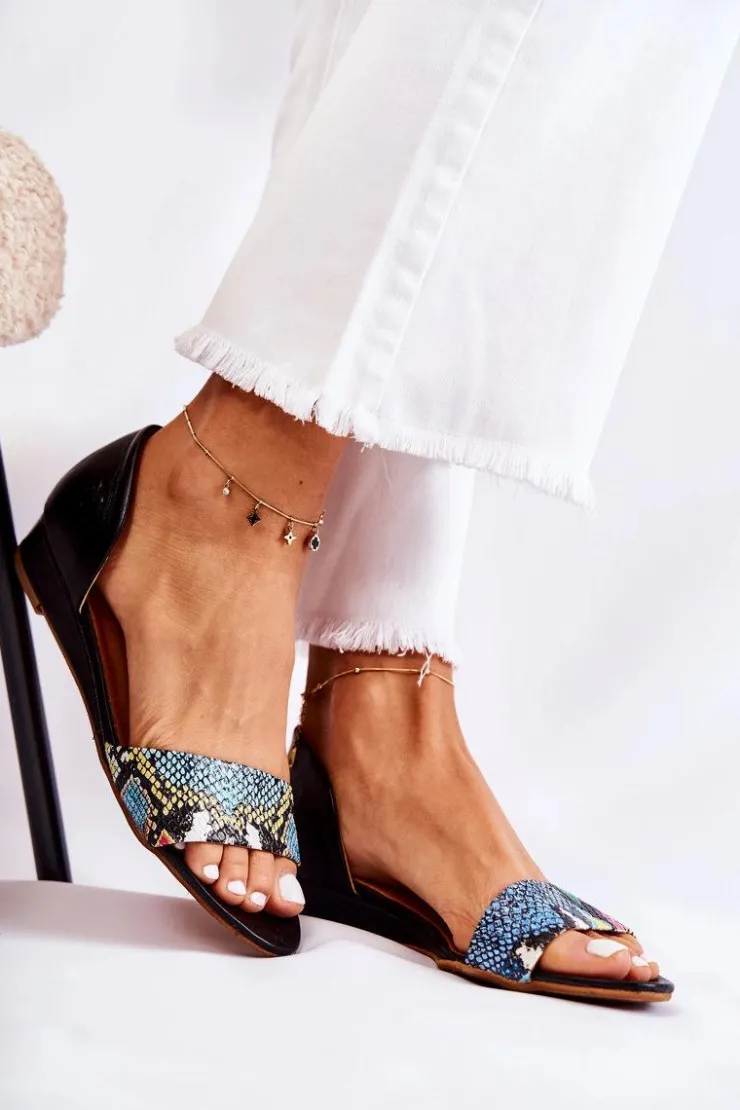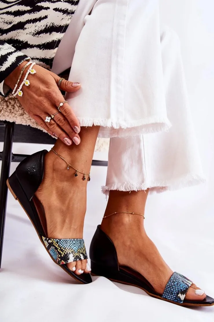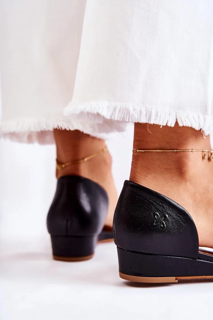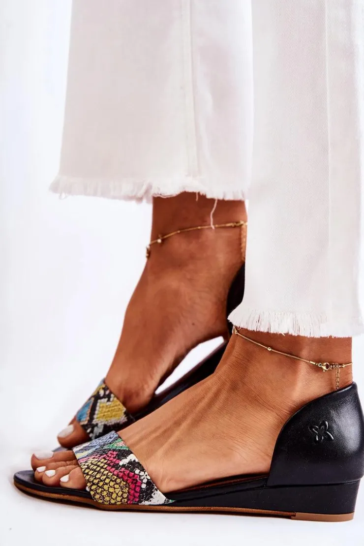 Maciejka Sandały Na Koturnie|Sandały Płaskie*Skórzane Sandały 1971-63 Czarne