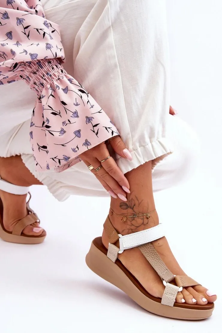 Maciejka Sandały Na Koturnie*Skórzane Sandały L5186-04 Beżowe