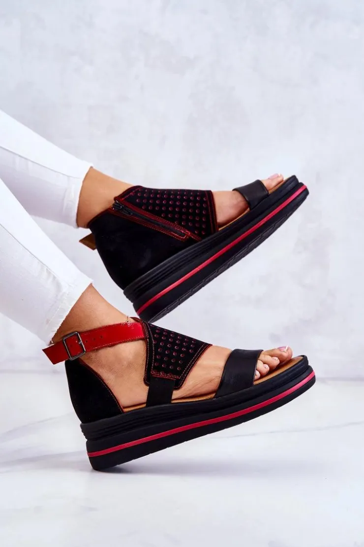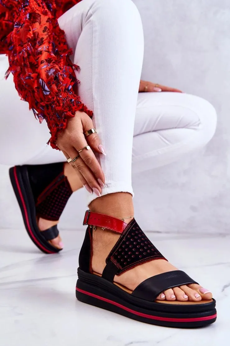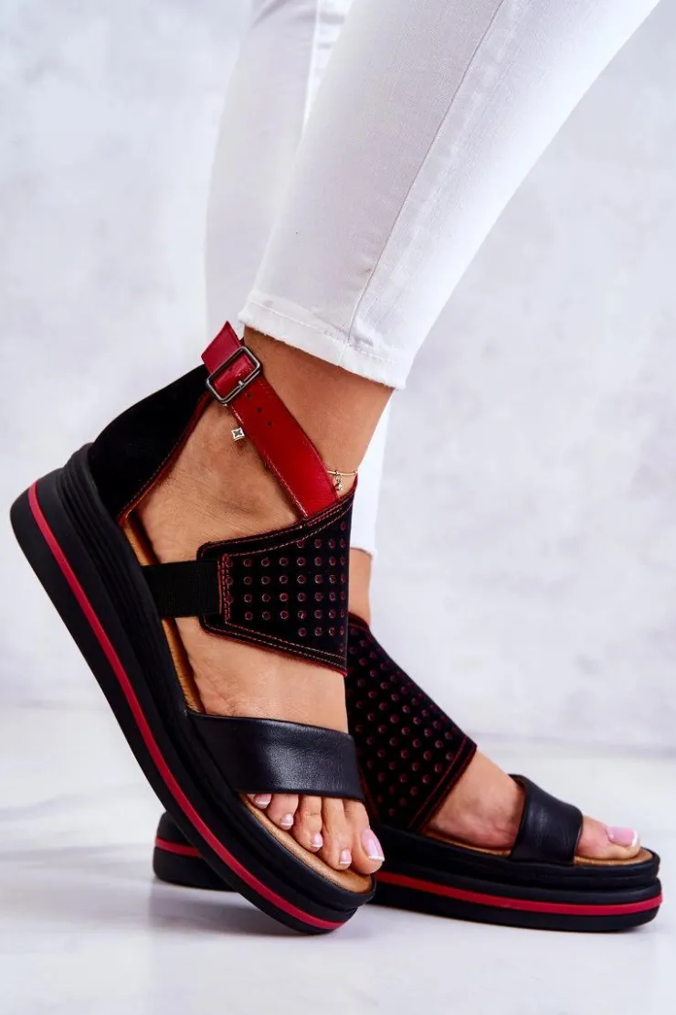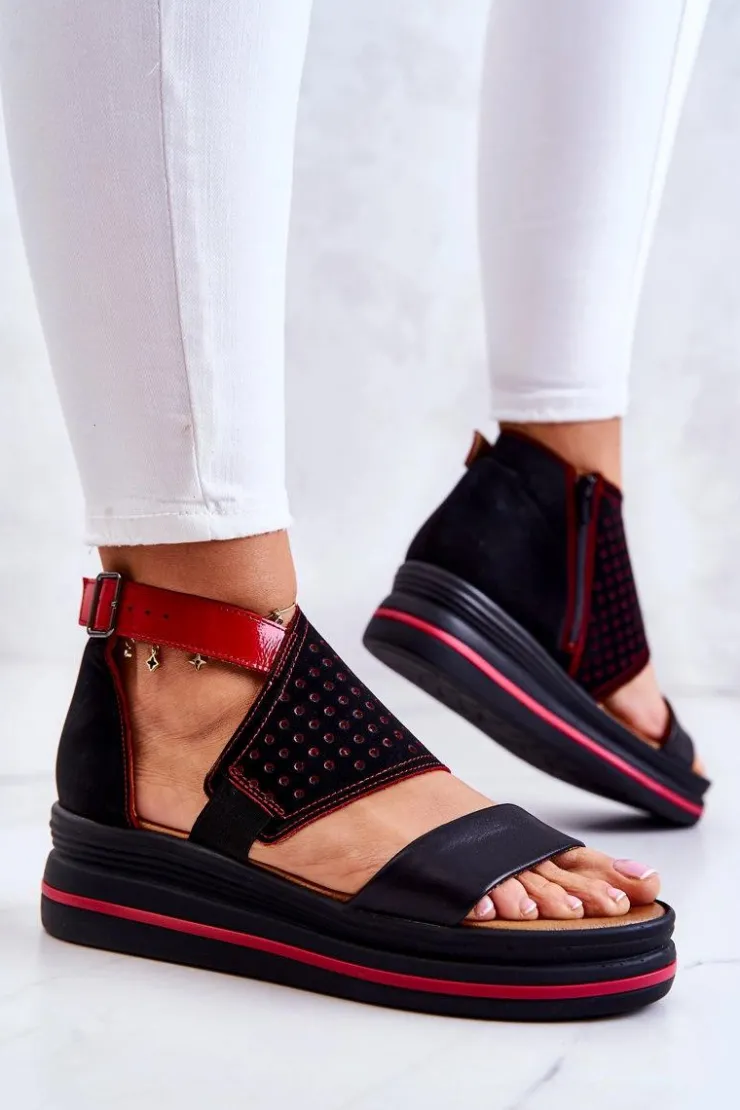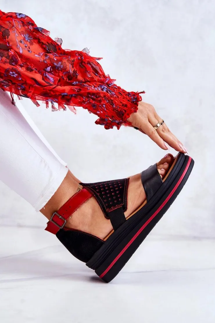 Maciejka Sandały Na Koturnie*Skórzane Sandały Na Koturnie 05356-01 Czarno-Czerwone