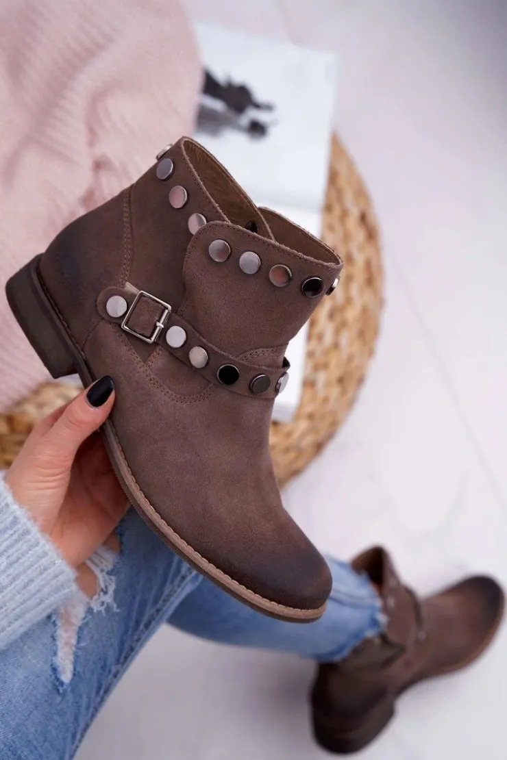 Polskie botki od firmy Exquisite co gwarantuje nam komfort oraz wysoką jakość wykonania. Idealne do zwiewnych sukienek oraz jeansowych spodni. Posiadają zdobioną klamrę. Świetnie sprawdzą się również podczas tworzenia wiosennych stylizacji. Botki w całości wykonane z naturalnego weluru. Przy wyborze rozmiaru prosimy sugerować się tabelą rozmiarów.