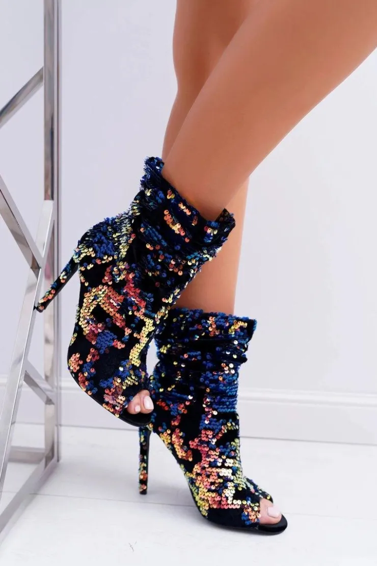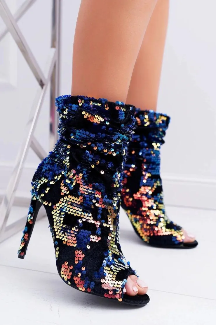 New Boto Botki Damskie Na Obcasie Eleganckie z Cekinami Opalizujące Harley