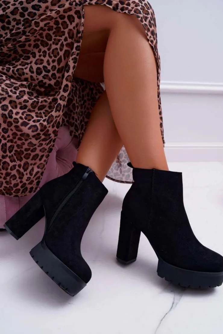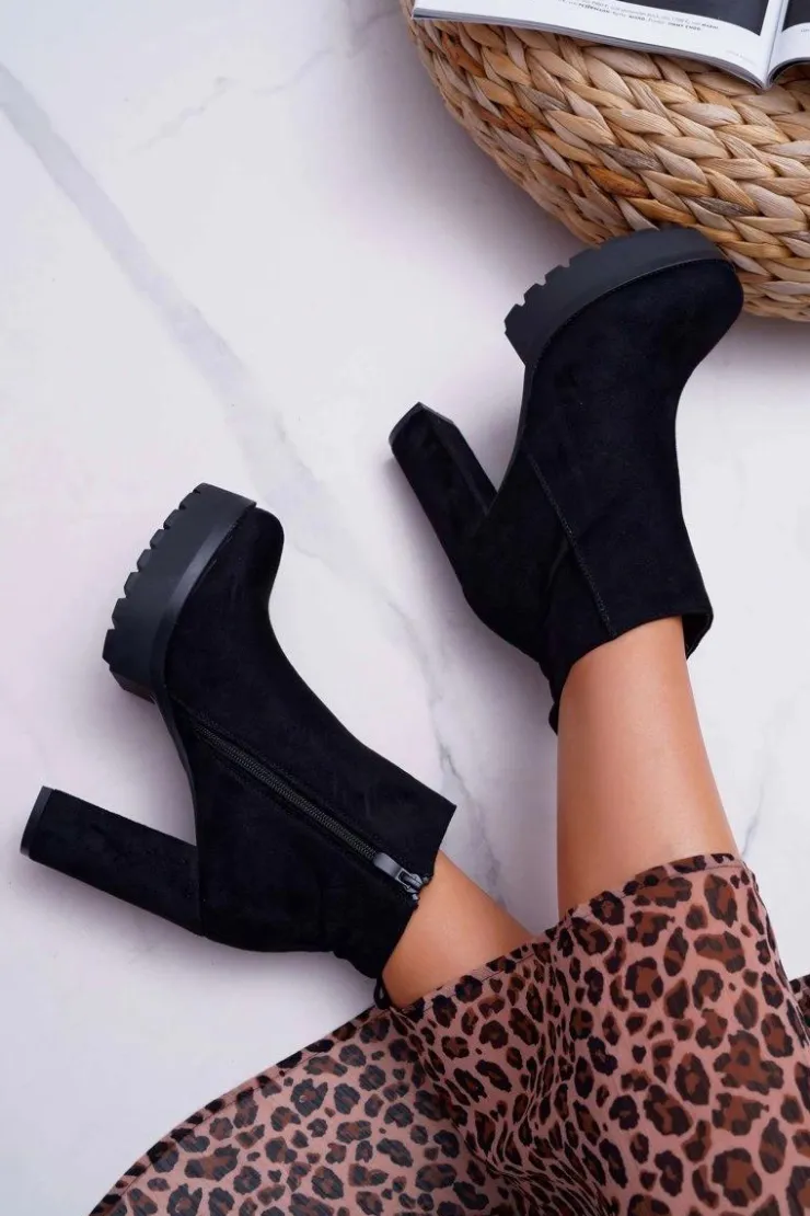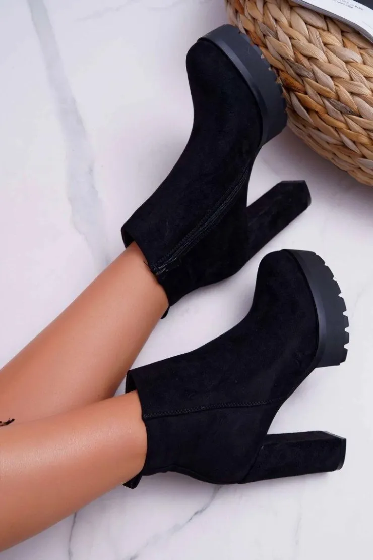 New Boto Botki Damskie na Słupku Zamszowe Czarne Jokano