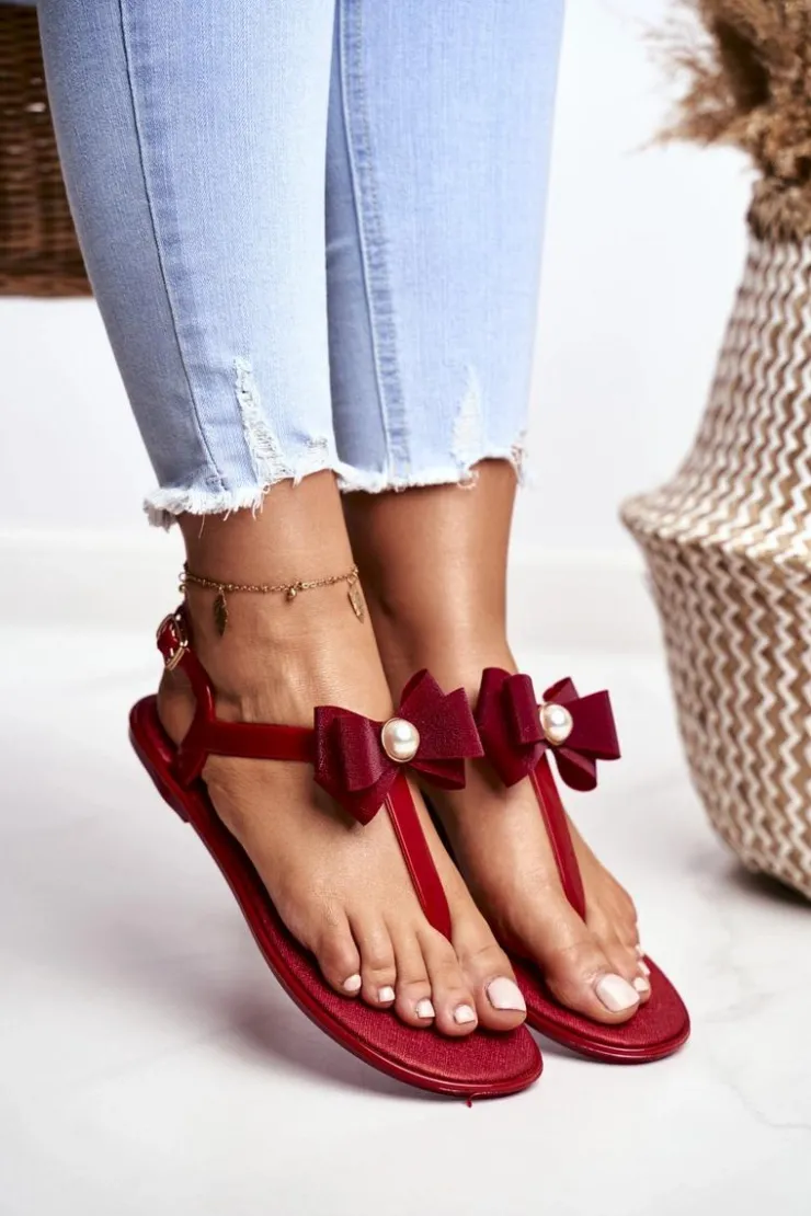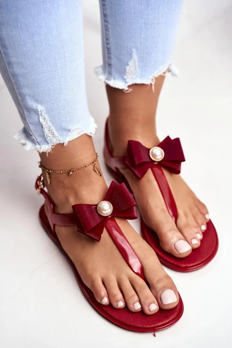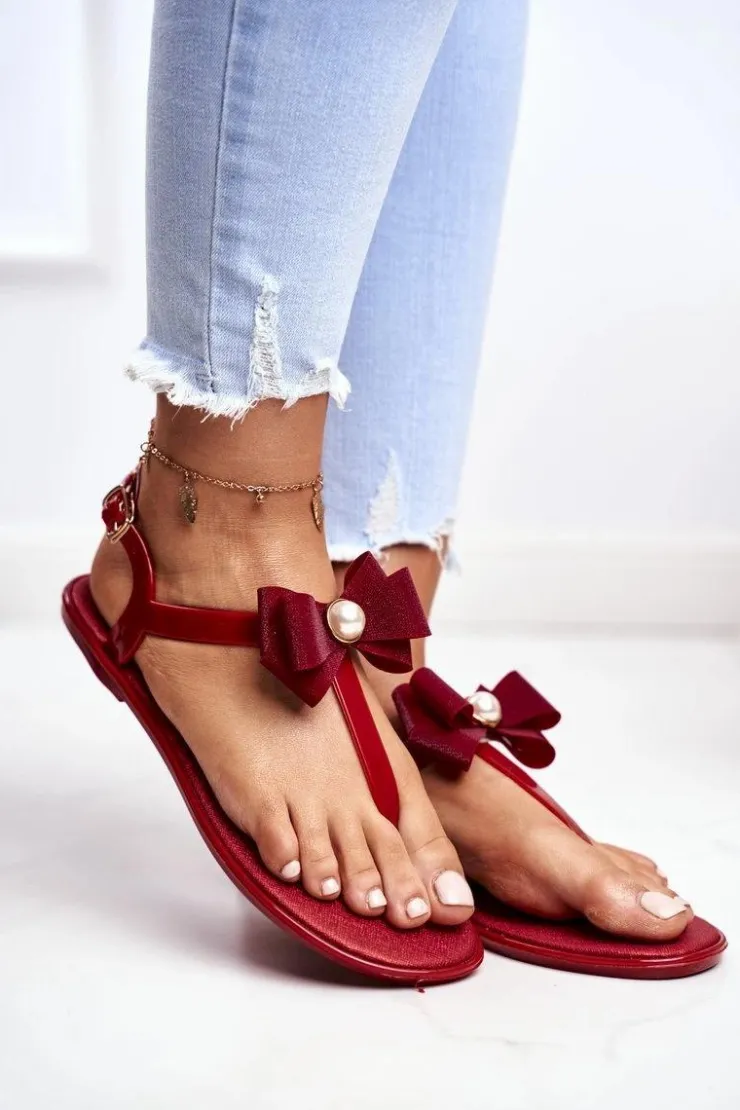 New Boto Czerwone Damskie Gumowe Sandałki Japonki Kokarda Etta