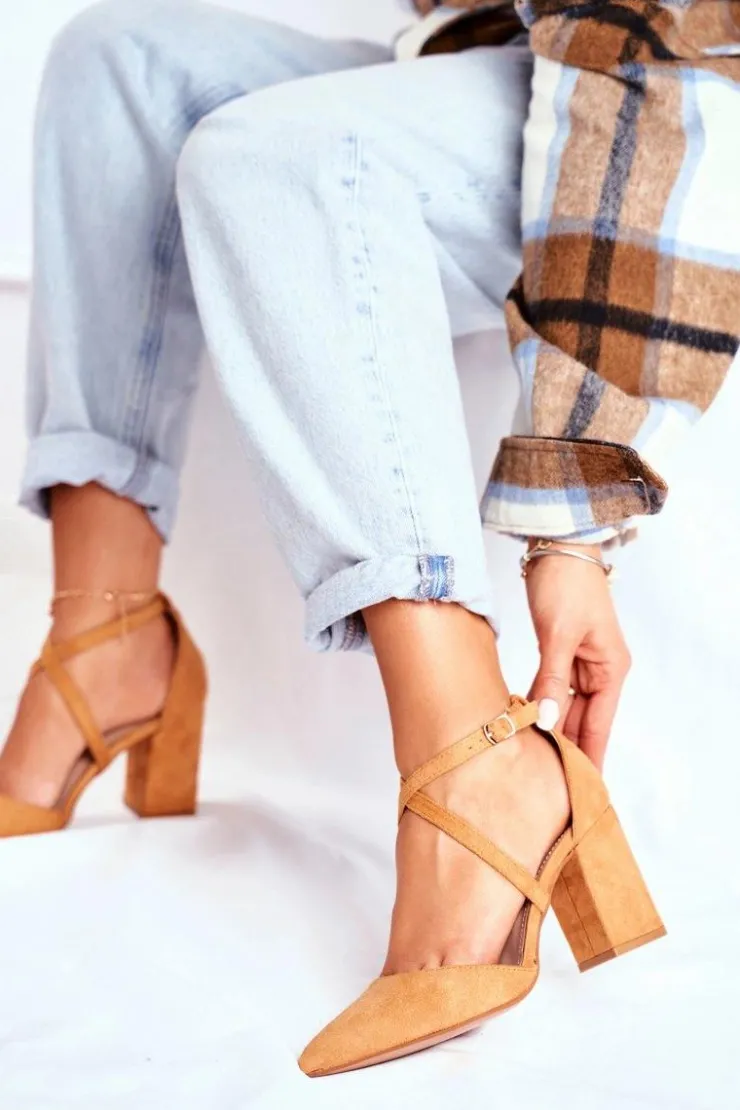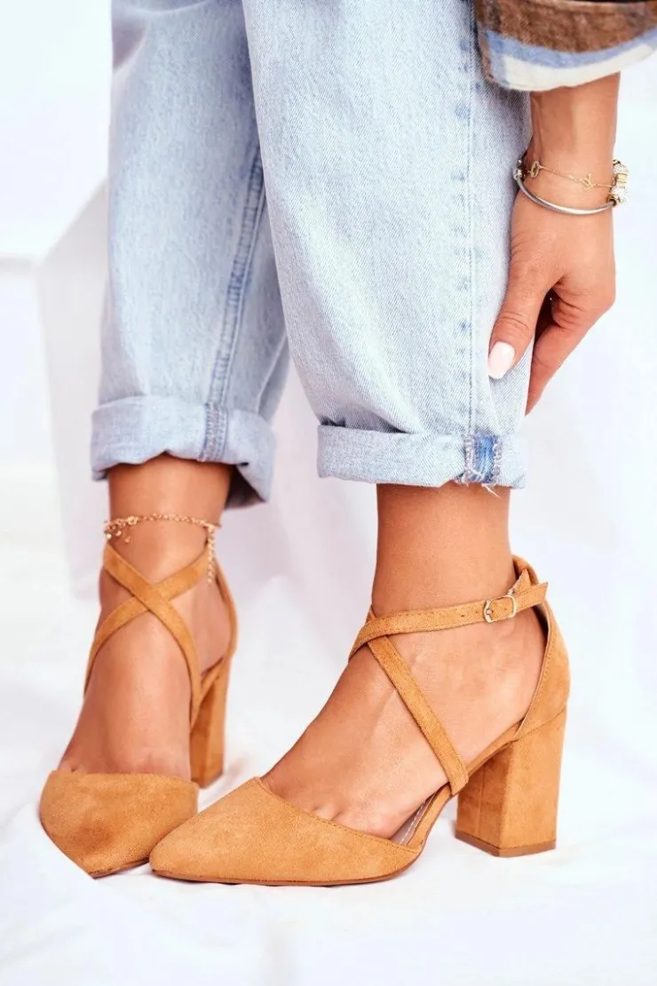 New Boto Czółenka Damskie Na Słupku W Szpic Camel Traffic