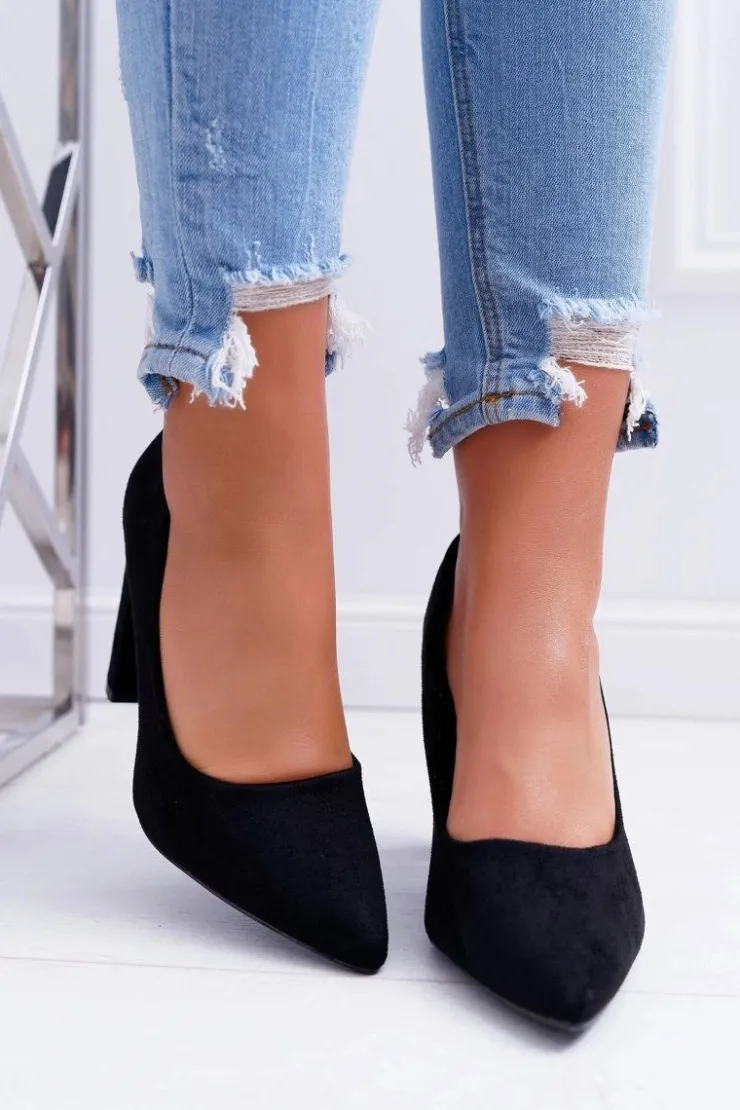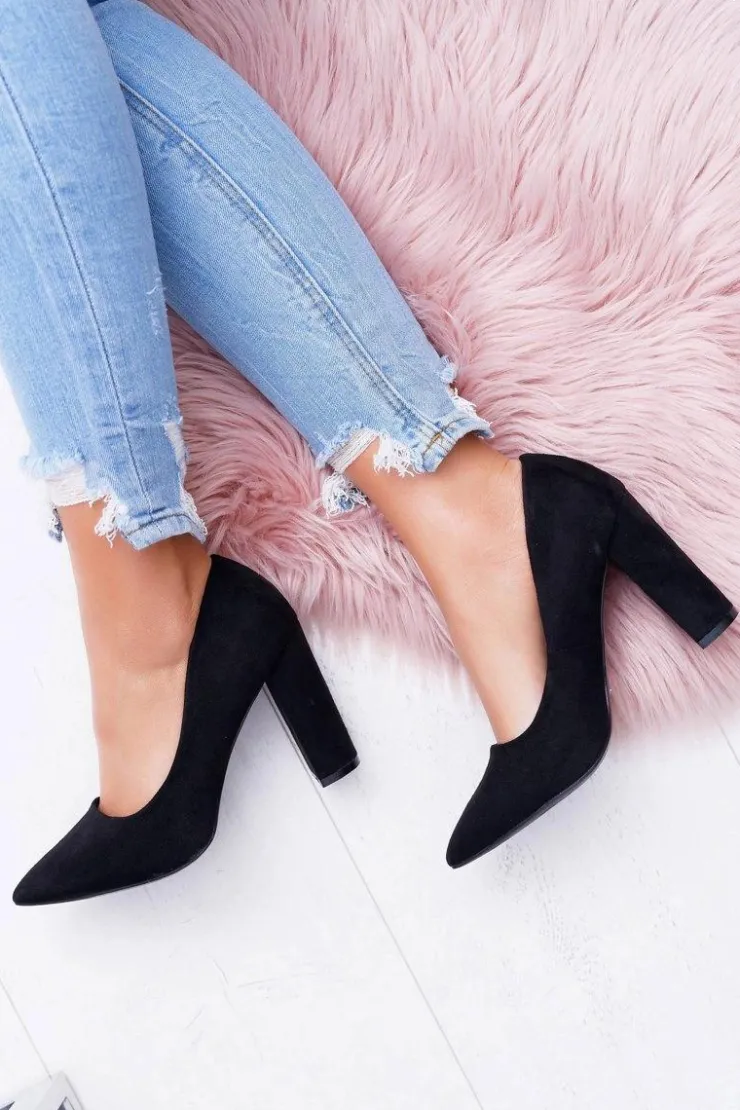 New Boto Czółenka Damskie Na Słupku Zamszowe Czarne Strawberry