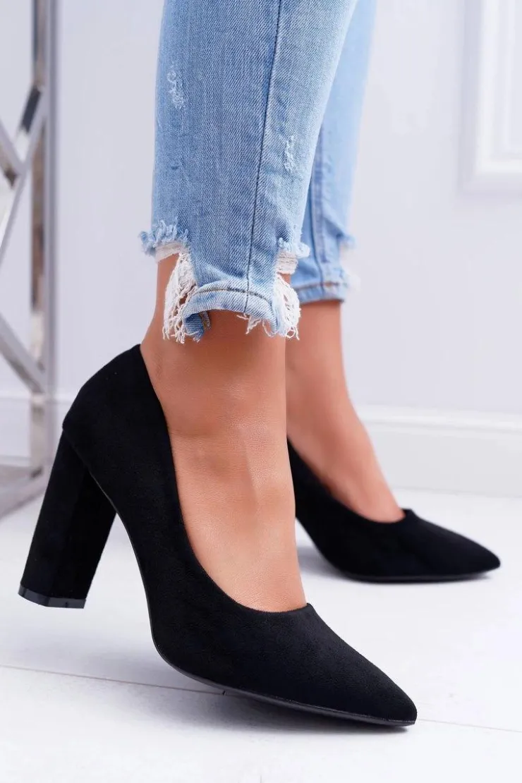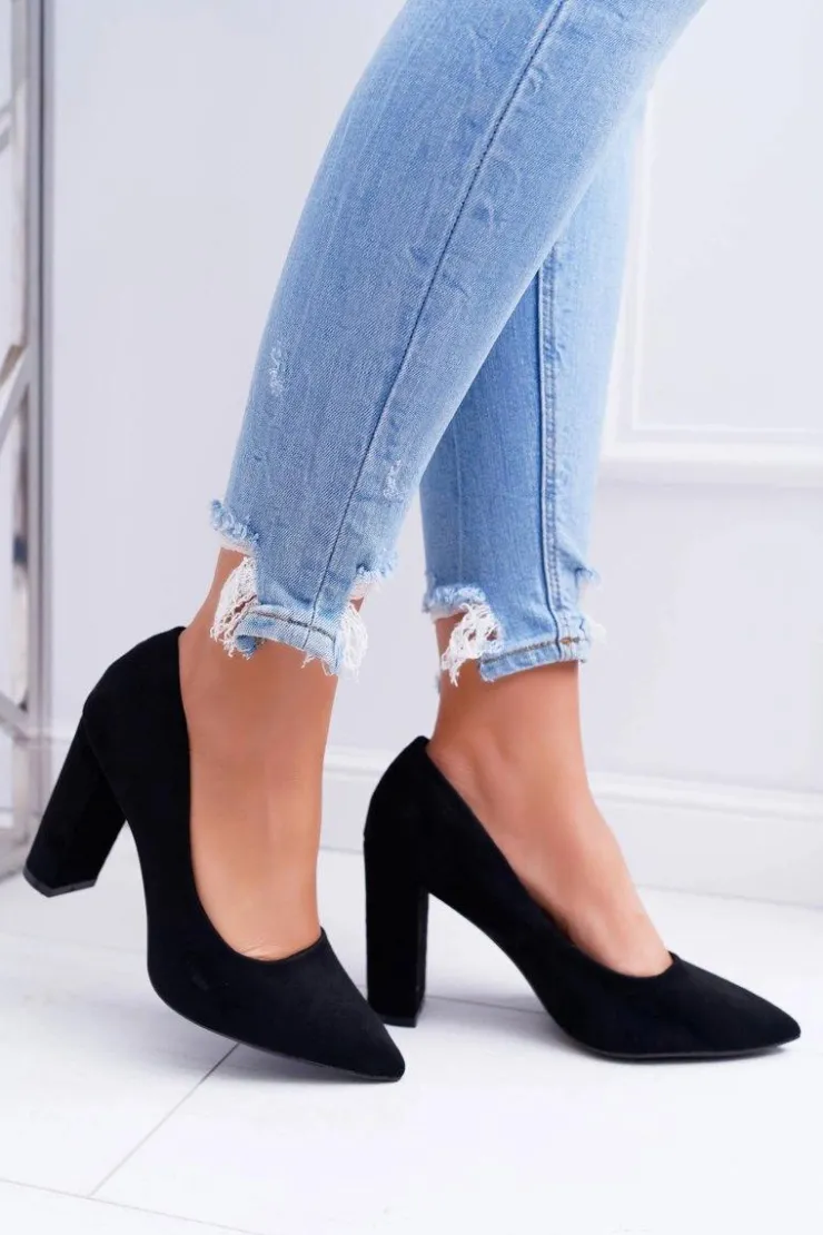 Jeśli szukasz odpowiedniego obuwia na przyjęcia bądź biznesowe spotkania, to trafiłaś idealnie! Nasza propozycja zamszowych czółenek świetnie sprawdzi się w każdej sytuacji a stabilny słupek, uniesie Twą sylwetkę. O nasz komfort zadba miękka profilowana wkładka, więc nie musisz się już martwić o bolące stopy. Dostępne w kilku kolorach, dlatego z pewnością wybierzesz coś dla siebie. Przy wyborze rozmiaru prosimy kierować się tabelą rozmiarów
