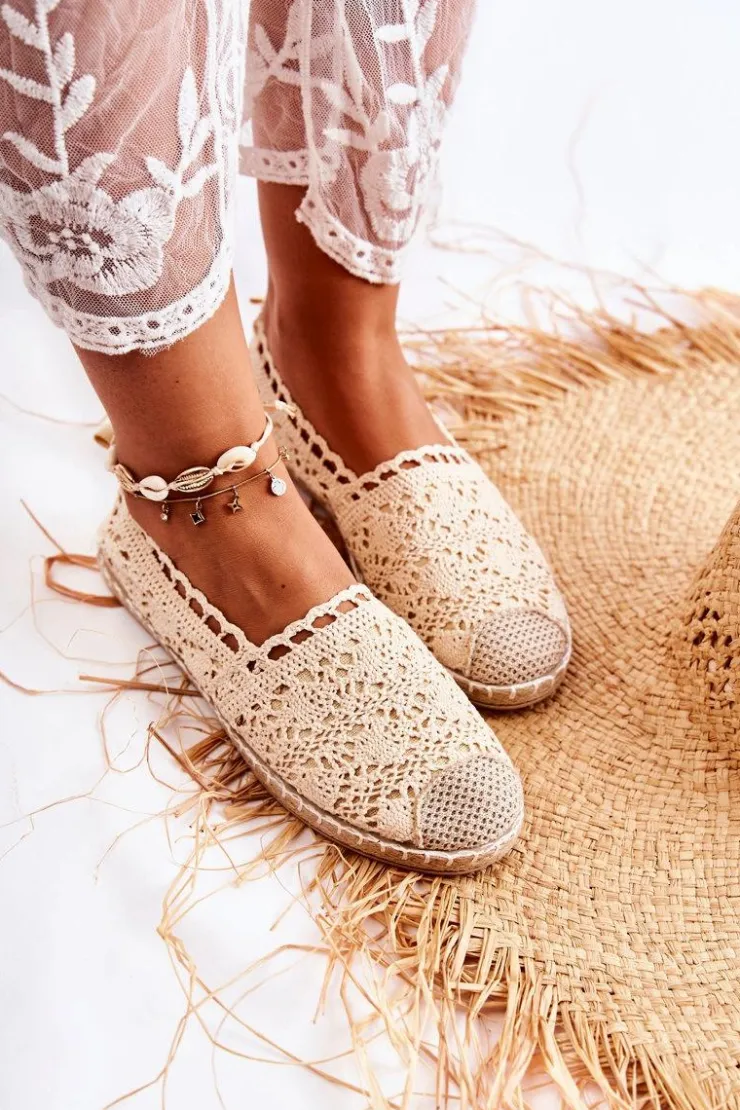 Wykonane z przewiewnego, ażurowego materiału tekstylnego espadryle damskie to idealne obuwie na sezon wiosenno-letni! Buty te posiadają delikatną platformę ozdobioną jutowym warkoczem. Nosek zaokrąglony, ozdobiony plecioną wstawką. Model klasyczny, wsuwany. Wkładka wykonana z eko skóry jest bardzo wygodna w użytkowaniu. Podeszwa z tworzywa sztucznego. Espadryle będą idealnie prezentować się z sukienkami, spódnicami, ale także szortami. Przy wyborze rozmiaru prosimy sugerować się tabelą rozmiarów.