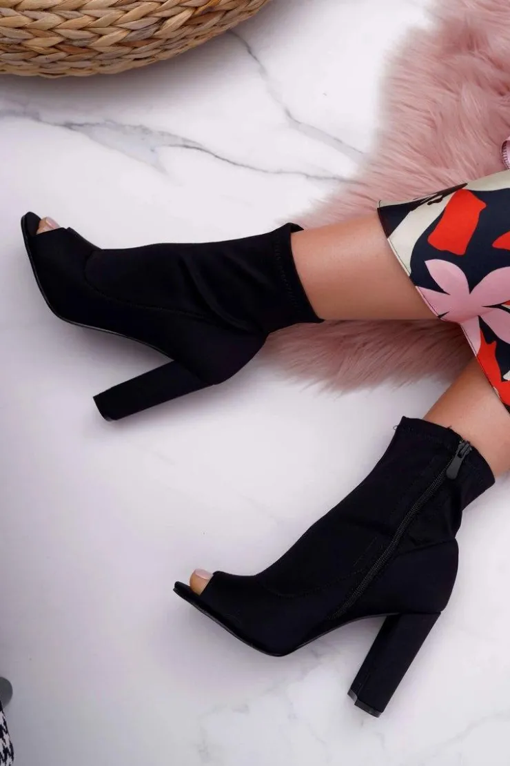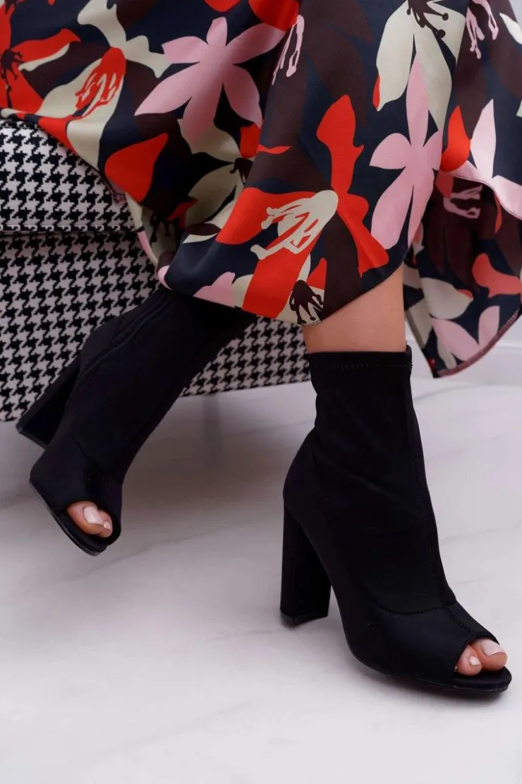New Boto Damskie Botki Na Słupku Lycra Odkryte Palce Czarne First