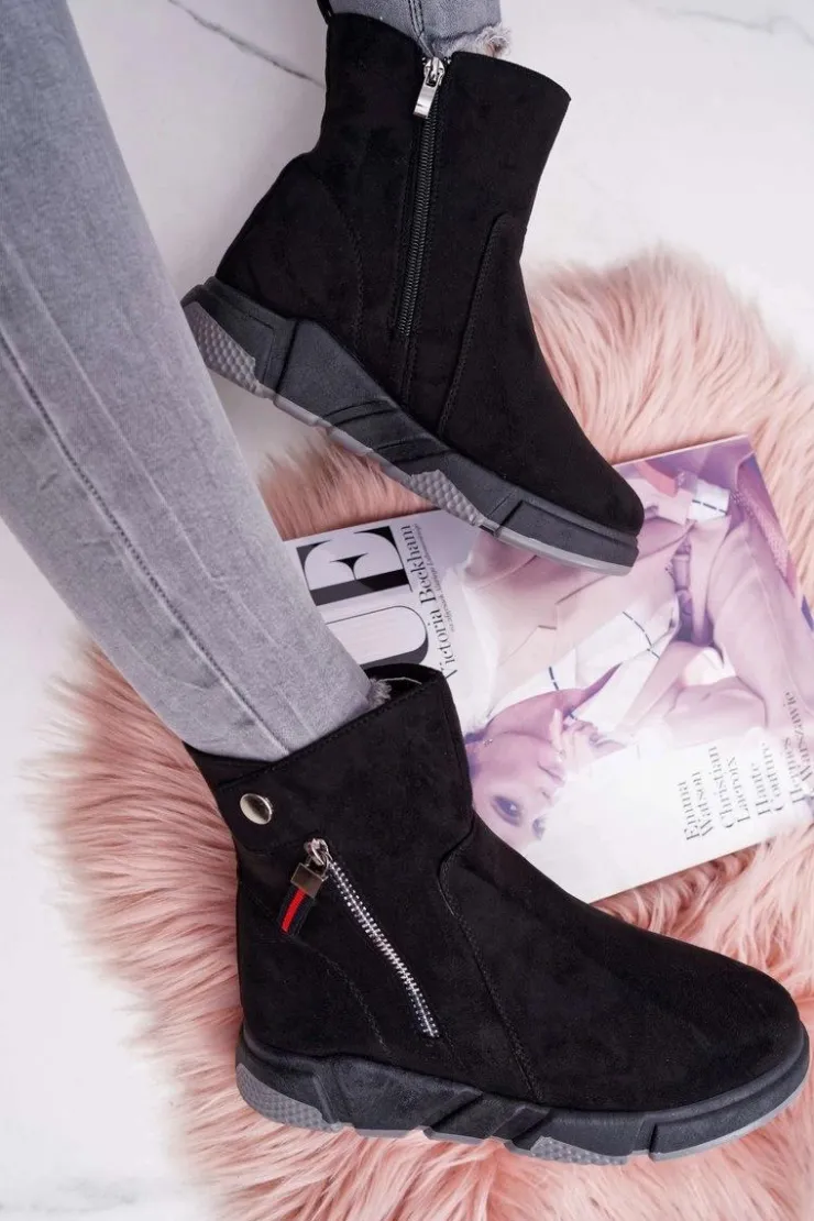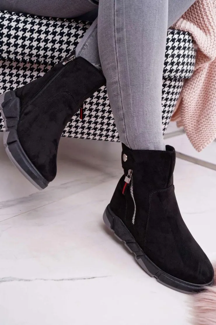 New Boto Damskie Botki Sportowe Ocieplane Czarny SJ1938 Nefera