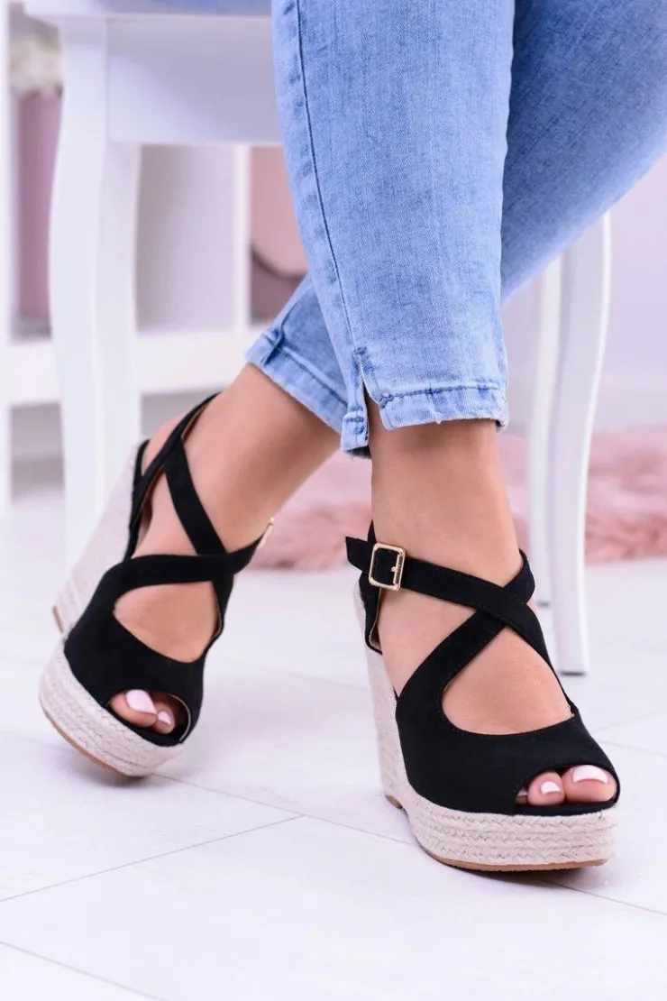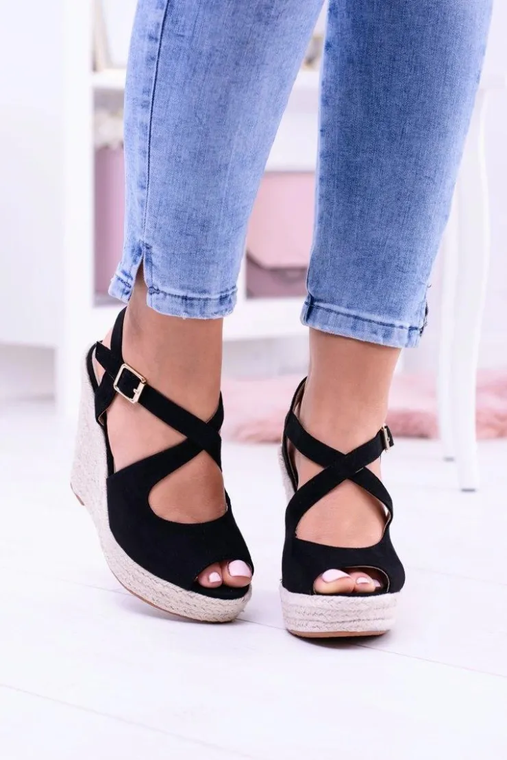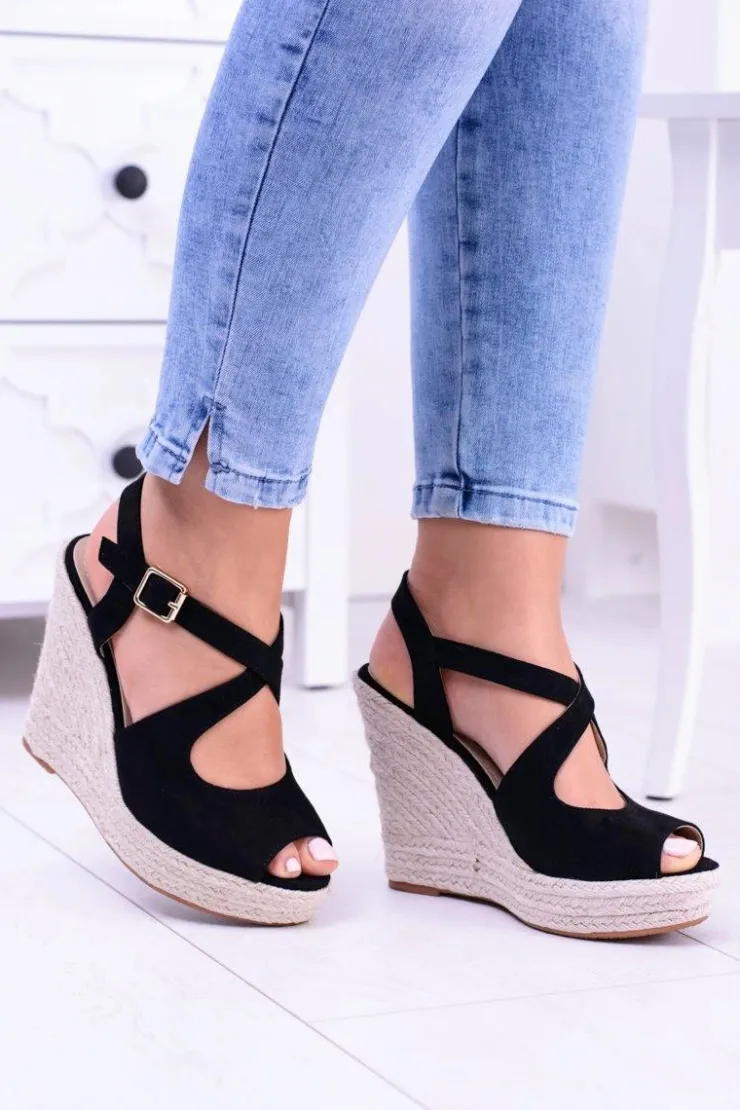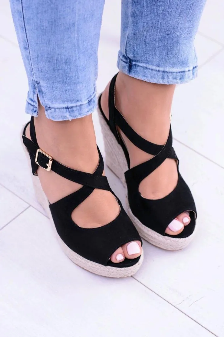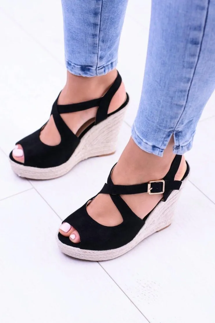 New Boto Damskie Czarne Sandały Na Koturnie Espadryle Elonore