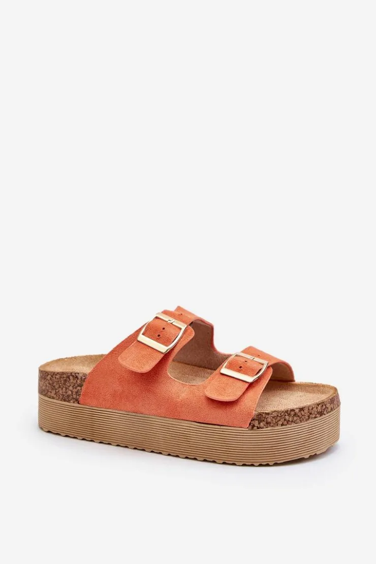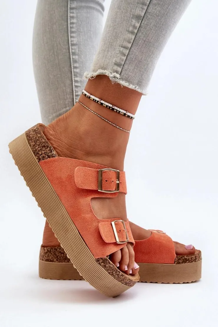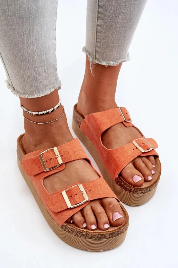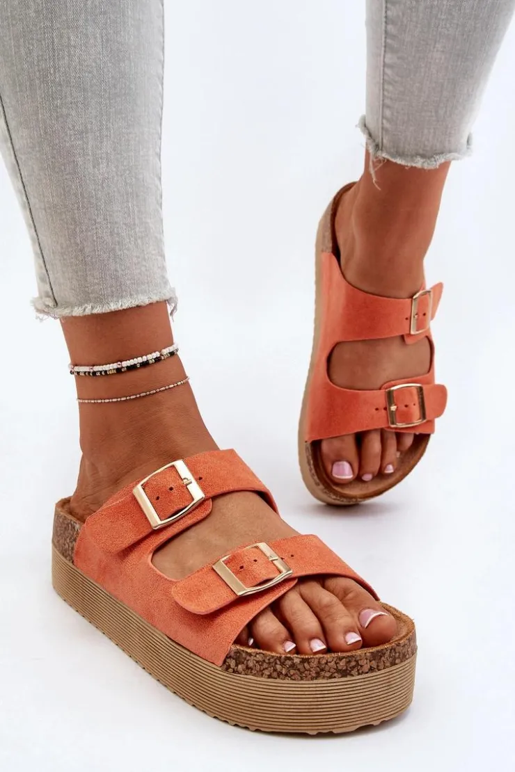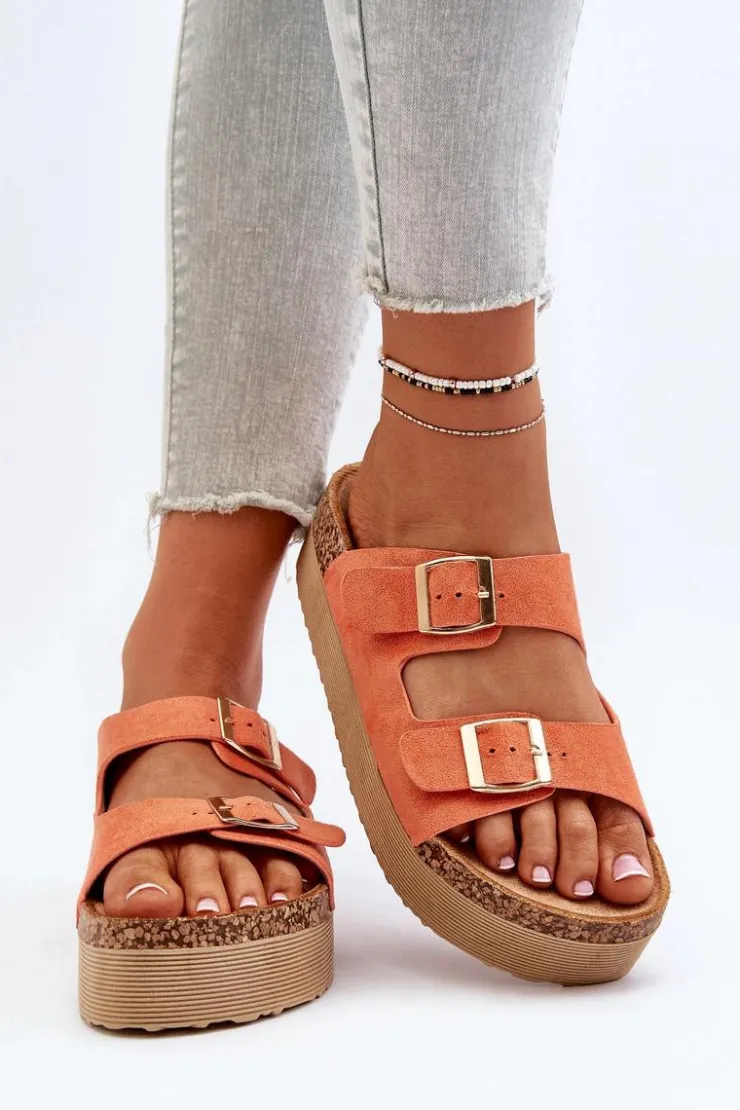 New Boto Damskie Klapki Na Platformie Z Klamrami Pomarańczowe Lolpey