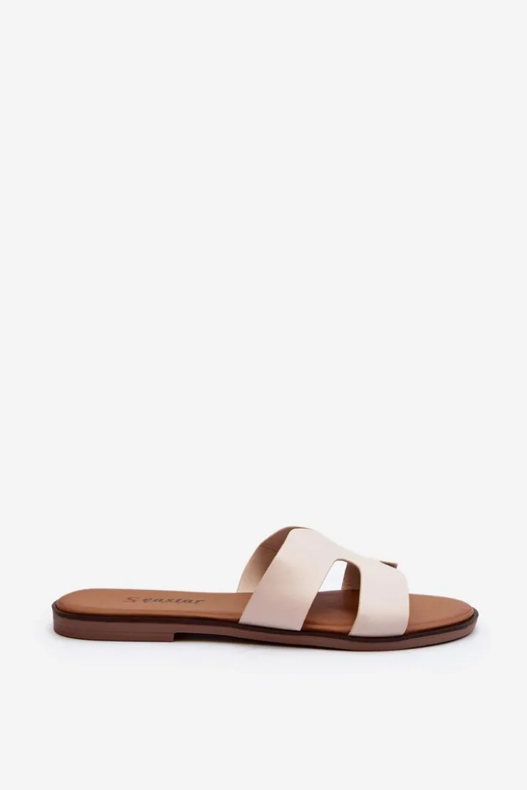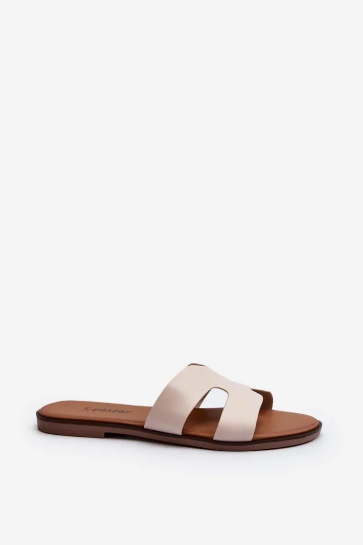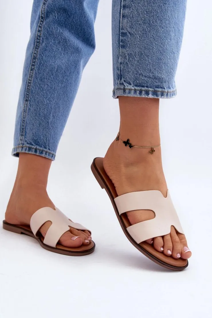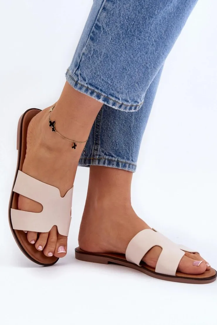 Klapki to idealna propozycja dla osób poszukujących uniwersalnego obuwia na lato. Wykonane z eko skóry. Płaski obcas gwarantuje wygodę podczas noszenia, co jest szczególnie istotne podczas letnich spacerów czy wyjść na miasto. Klasyczny fason sprawia, że świetnie pasują do różnych letnich stylizacji! Przy wyborze rozmiaru prosimy sugerować się tabelą rozmiarów.