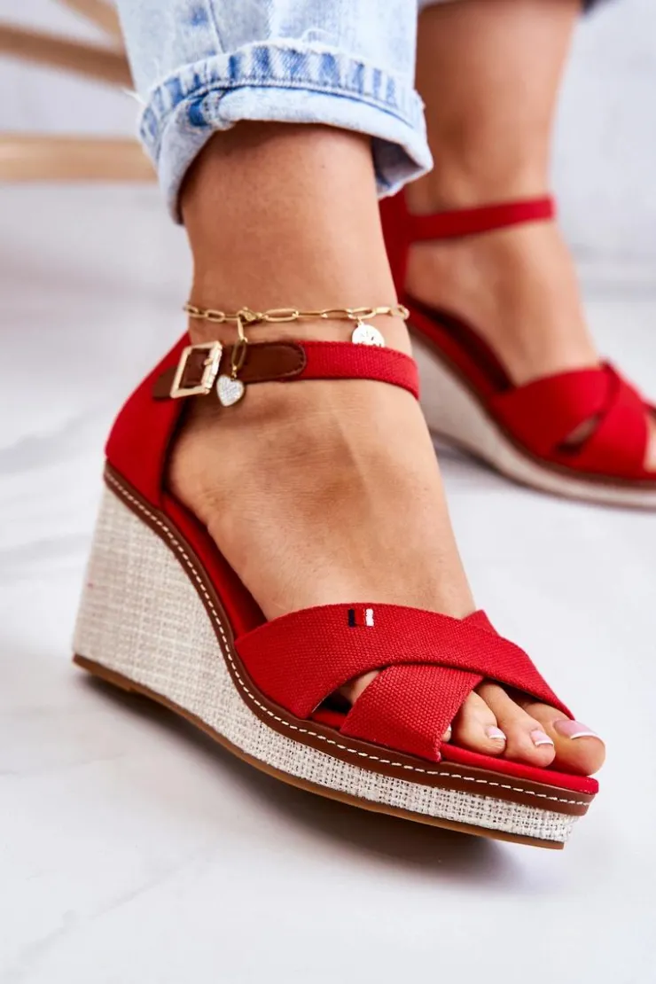 Wyjątkowe sandały na koturnie z plecionką. Buty zostały wykonane z materiału tekstylnego. Zapiętek usztywniany. Miękka wkładka wykonana z połączenia eko skóry oraz materiału tekstylnego zadba o Twój komfort podczas użytkowania. Zapinane wokół kostki na regulowany pasek ze sprzączką. Zdobienie nicią na jednym z pasków. Buty posiadają odkryte palce i zakrytą piętę. Dzięki takiemu obcasowi buty są stabilniejsze od tradycyjnych szpilek. Świetny model na letnie dni! Przy wyborze rozmiaru prosimy sugerować się tabelą rozmiarów.