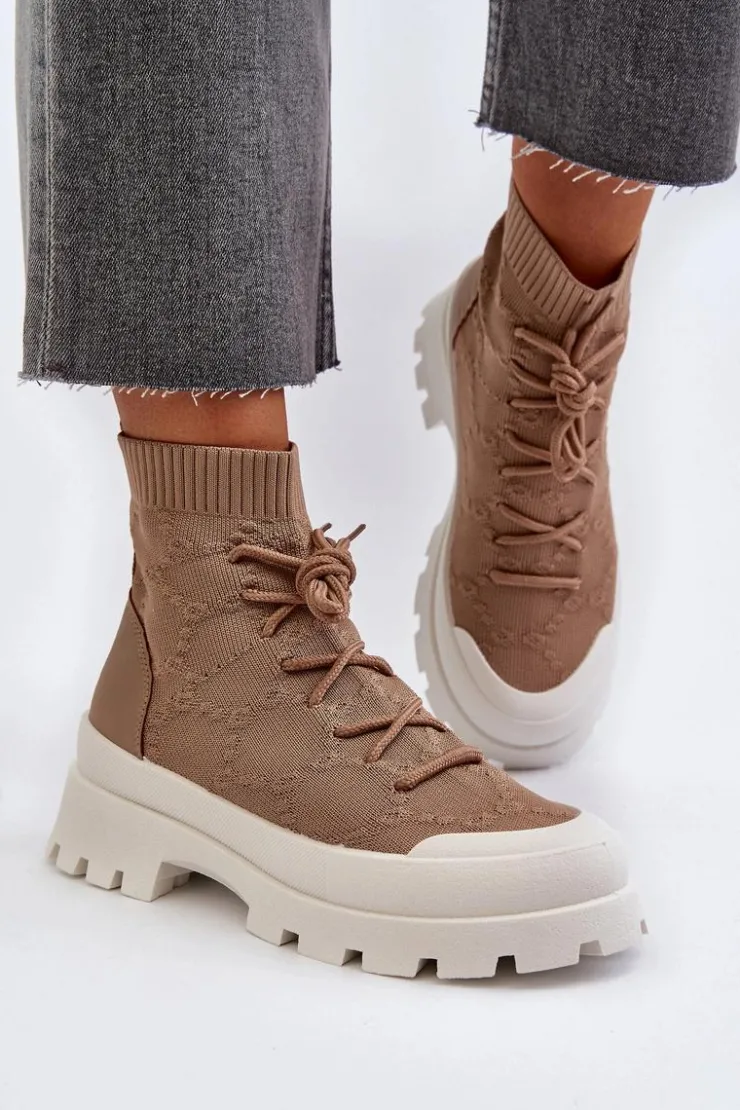 New Boto Damskie Skarpetkowe Wsuwane Botki Brązowe Solime