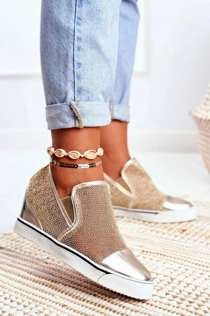 New Boto Damskie Sneakersy Lu Boo z Siateczką Złote Morgono