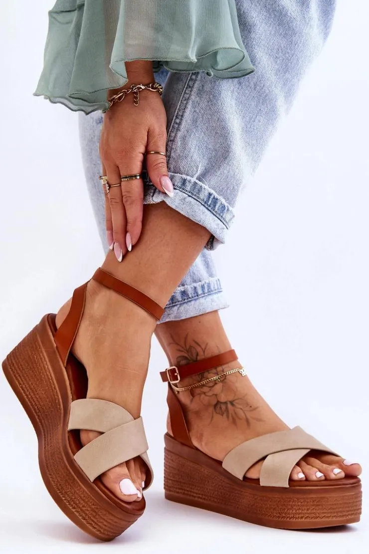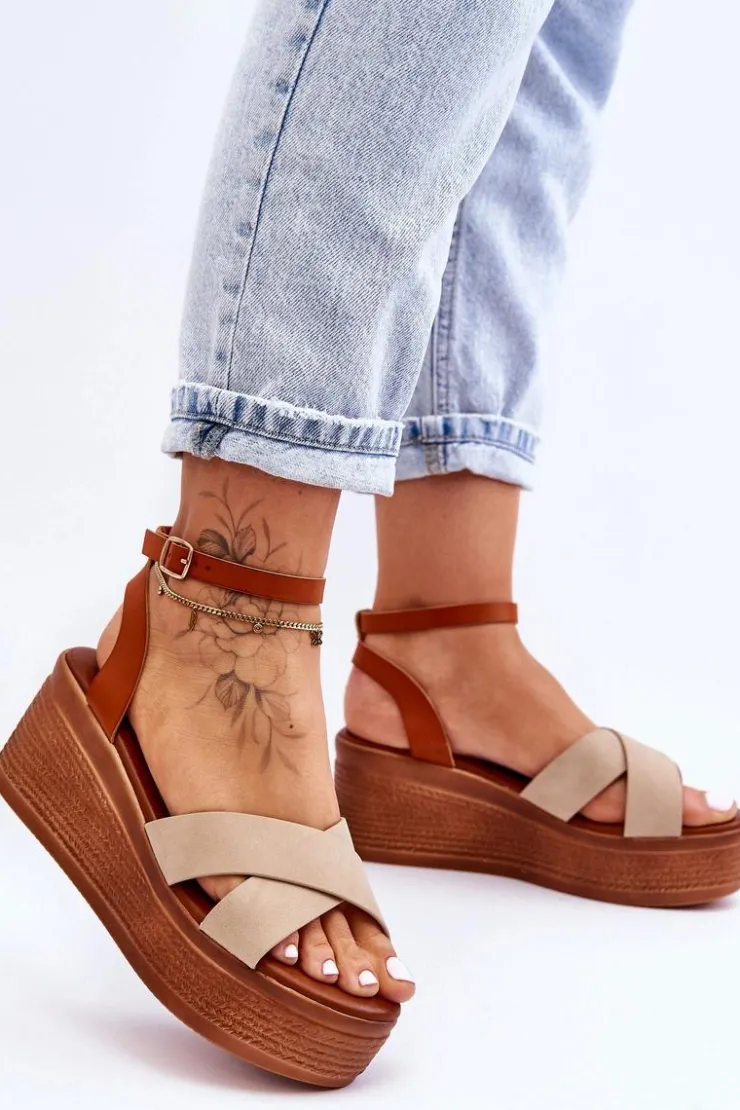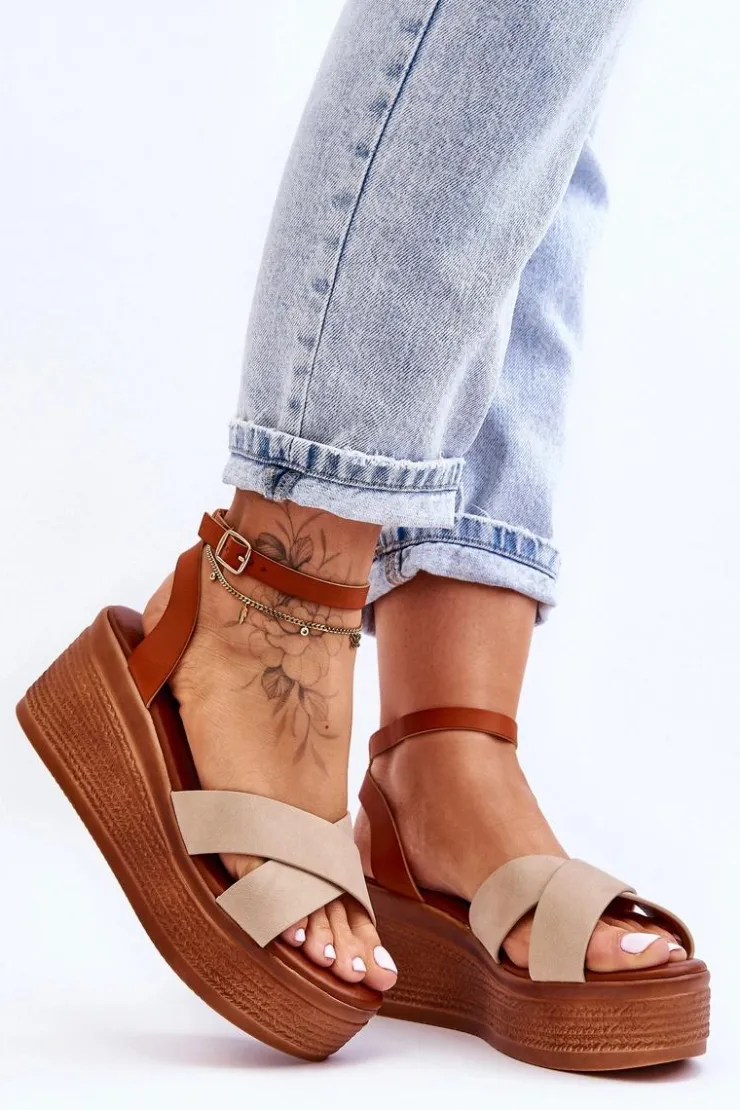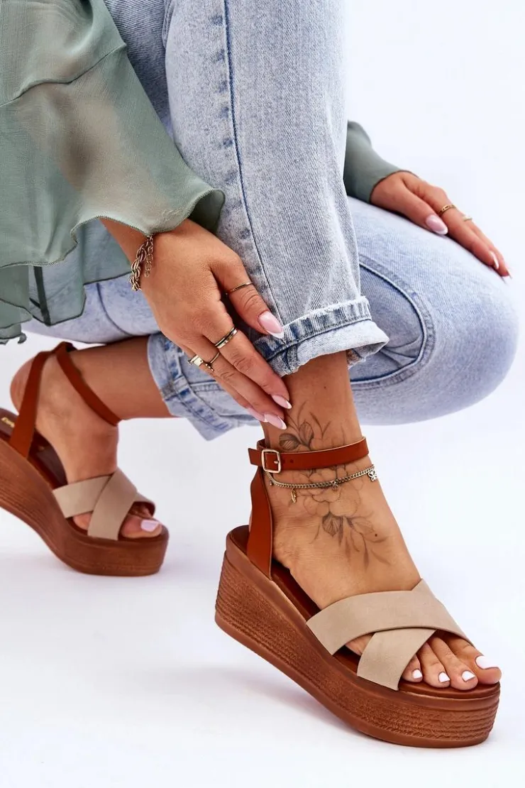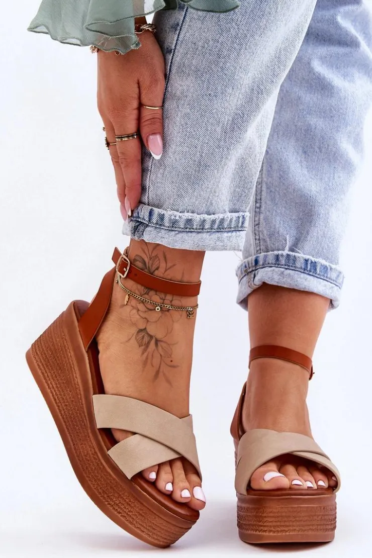 Klasyczne sandały damskie zostały osadzone na koturnie oraz platformie. Model ten posiada na przodzie dwa krzyżujące się paski. Miękka wkładka z eko skóry zapewni komfortowe użytkowanie obuwia. Sandałki posiadają platformę ozdobioną imitacją warkoczy. Zapinane na regulowany pasek ze sprzączką. Przy wyborze rozmiaru prosimy sugerować się tabelą rozmiarów.
