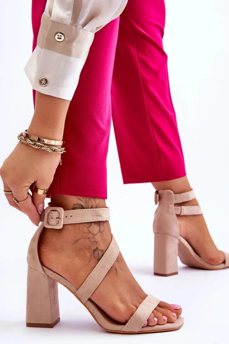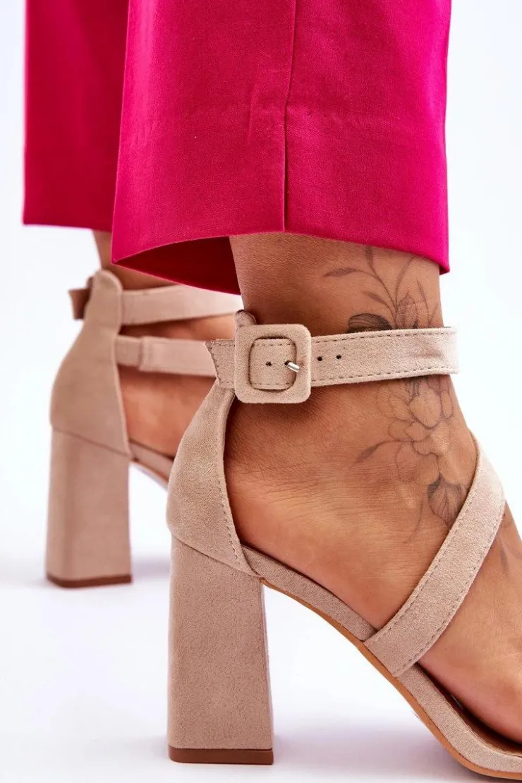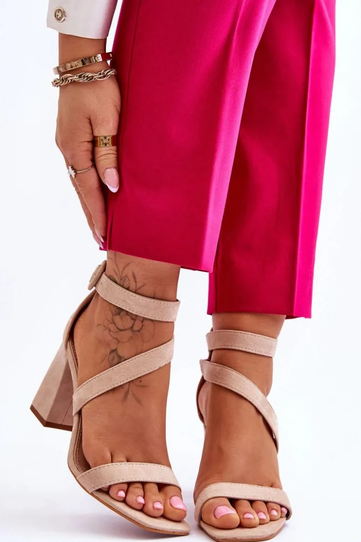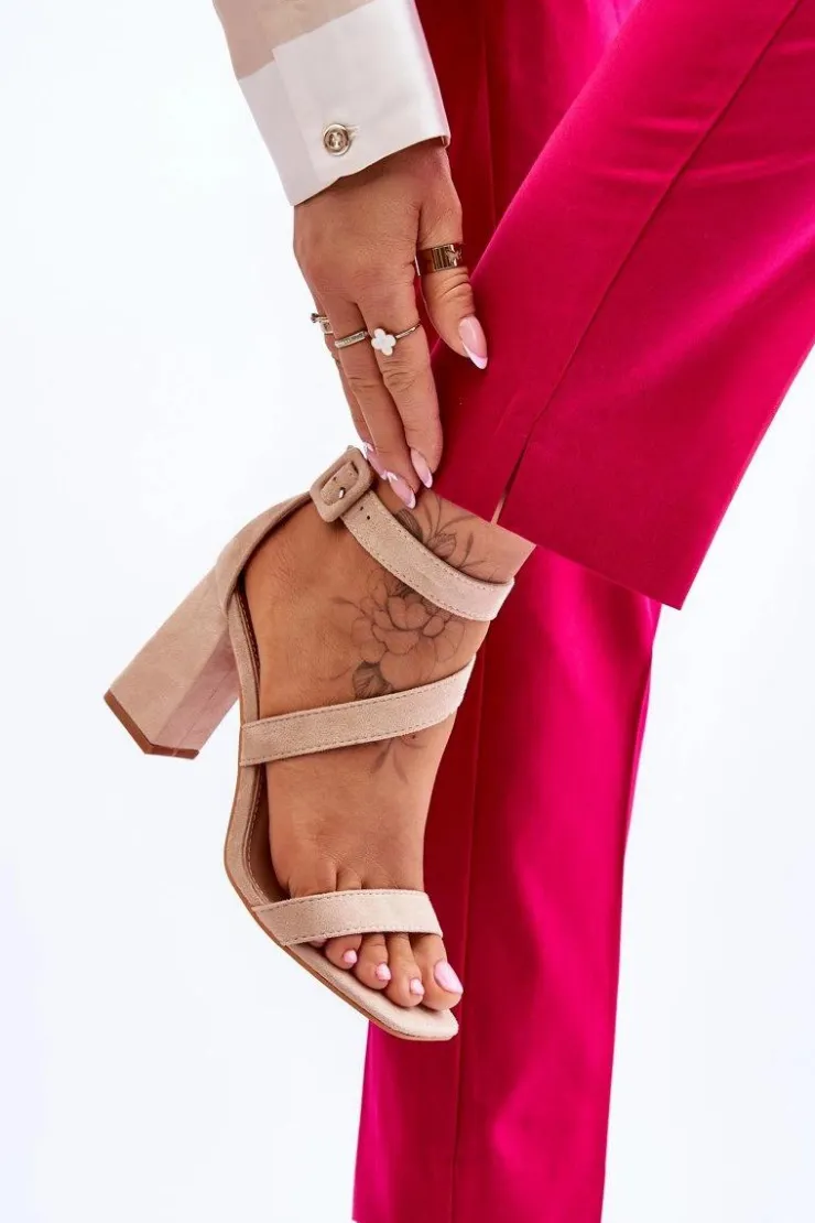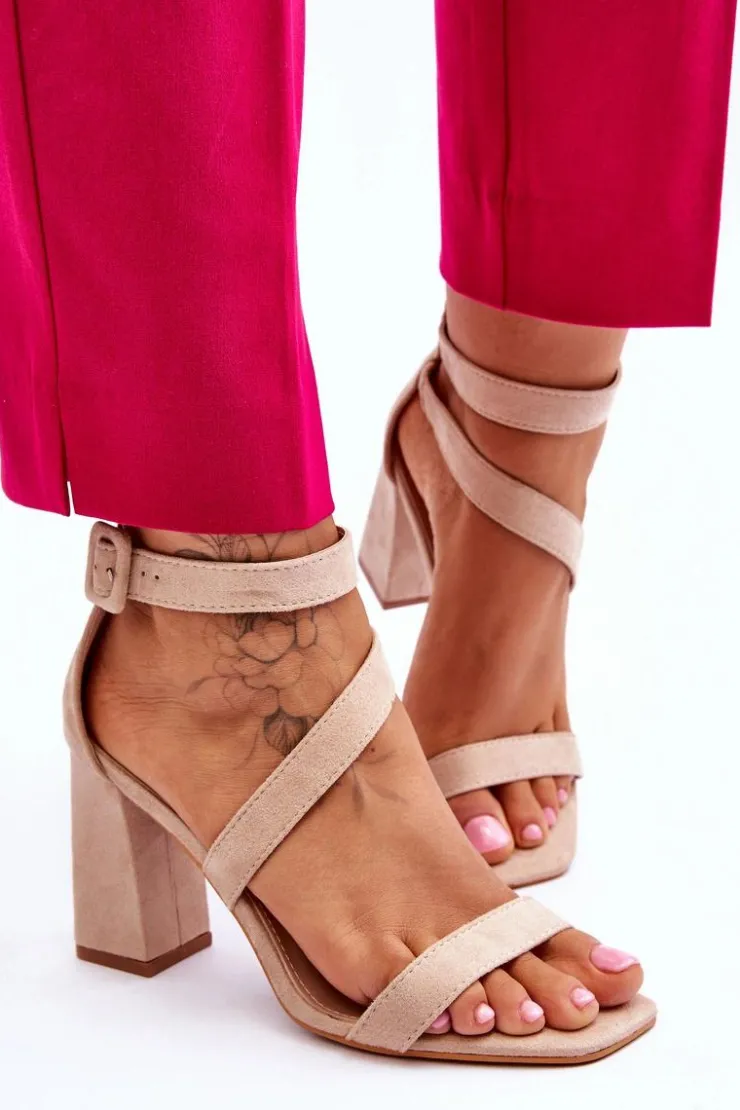 New Boto Damskie Zamszowe Sandały Na Obcasie Beżowe Lanes