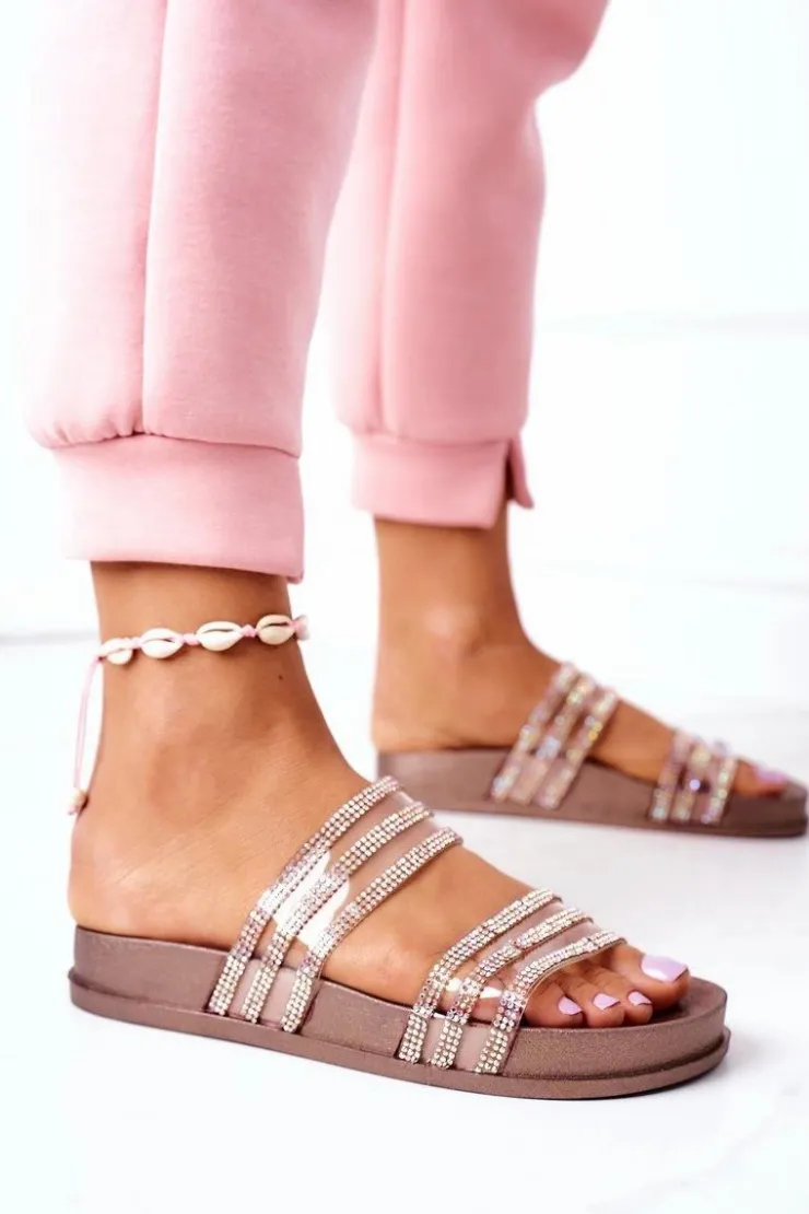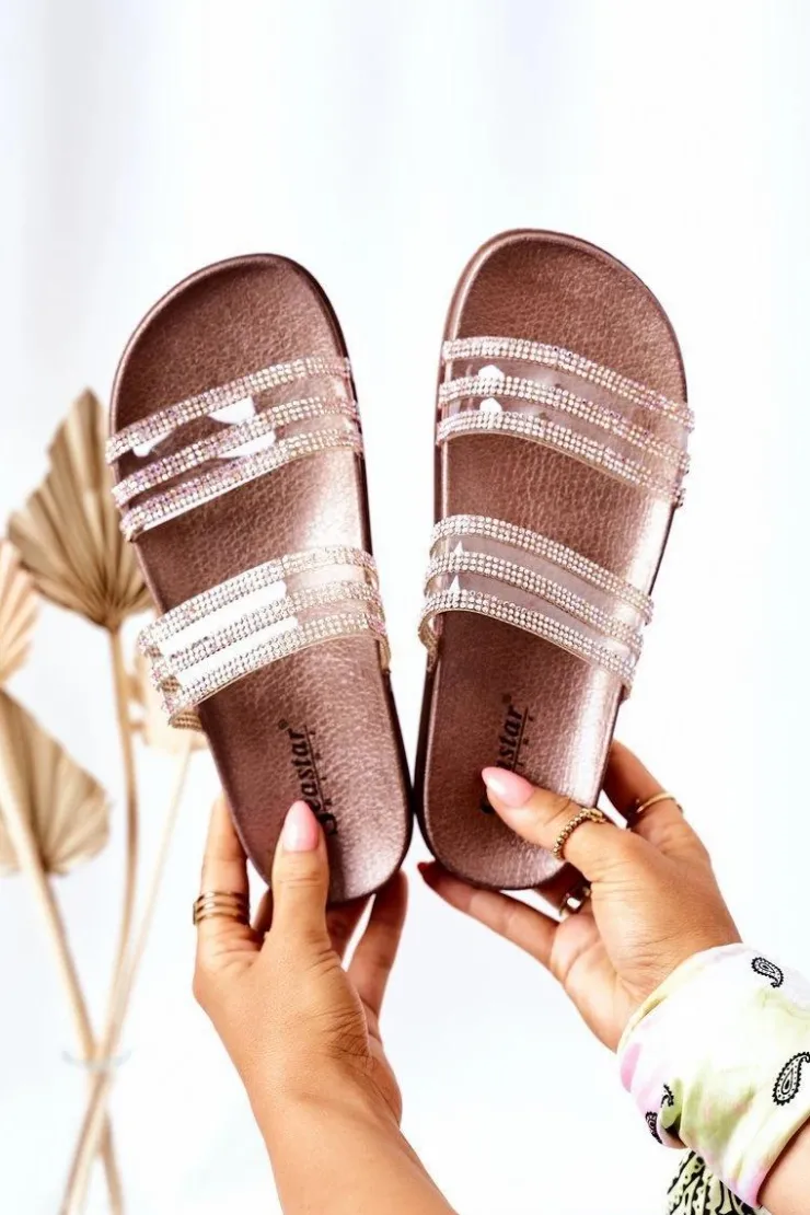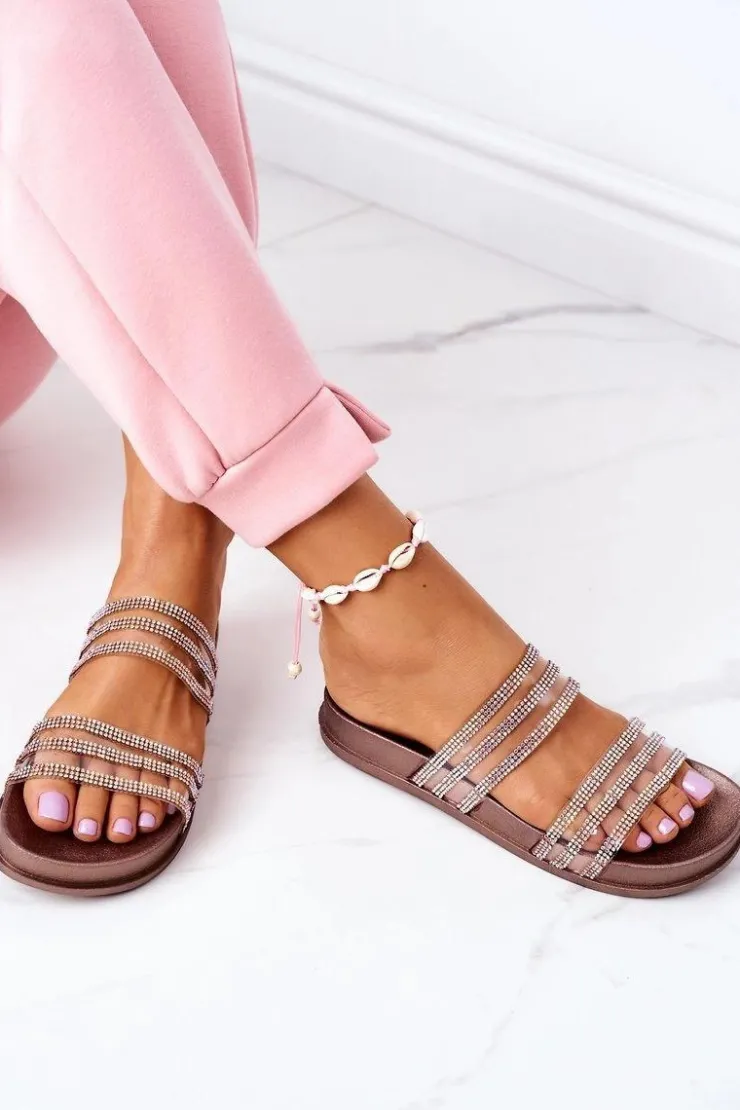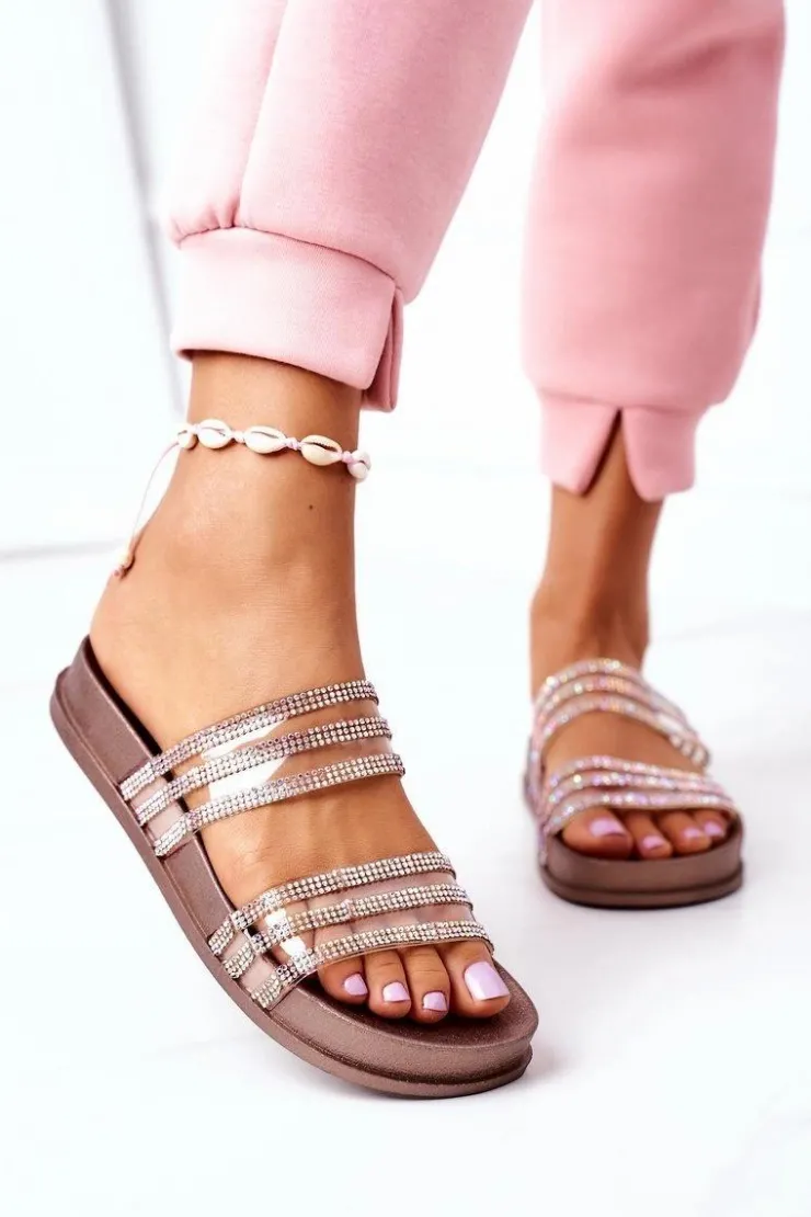 New Boto Gumowe Klapki Z Cyrkoniami Różowe Złoto Miss You