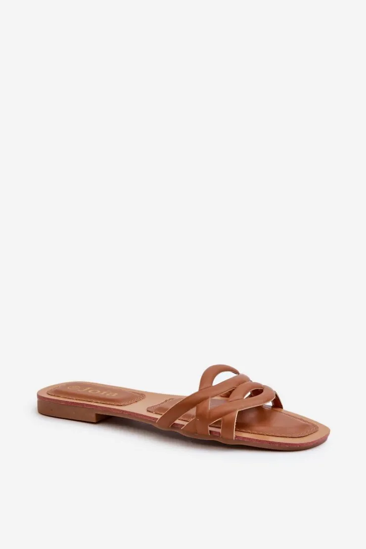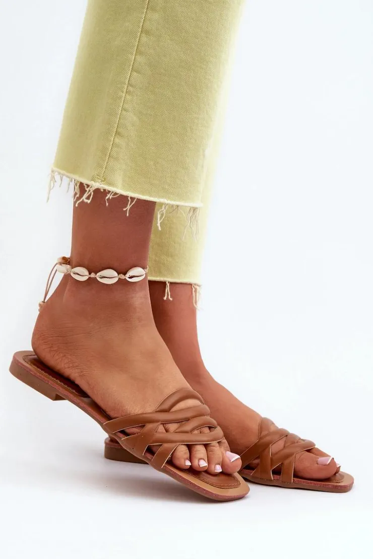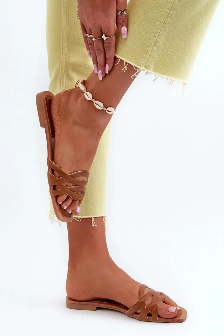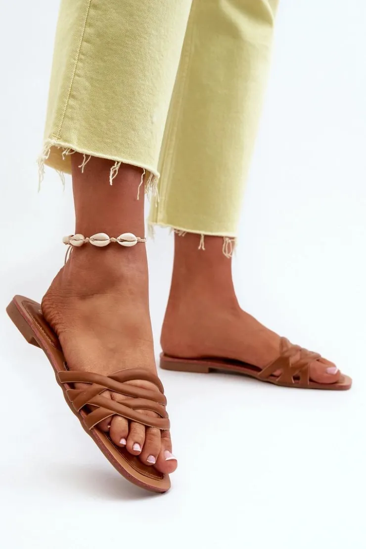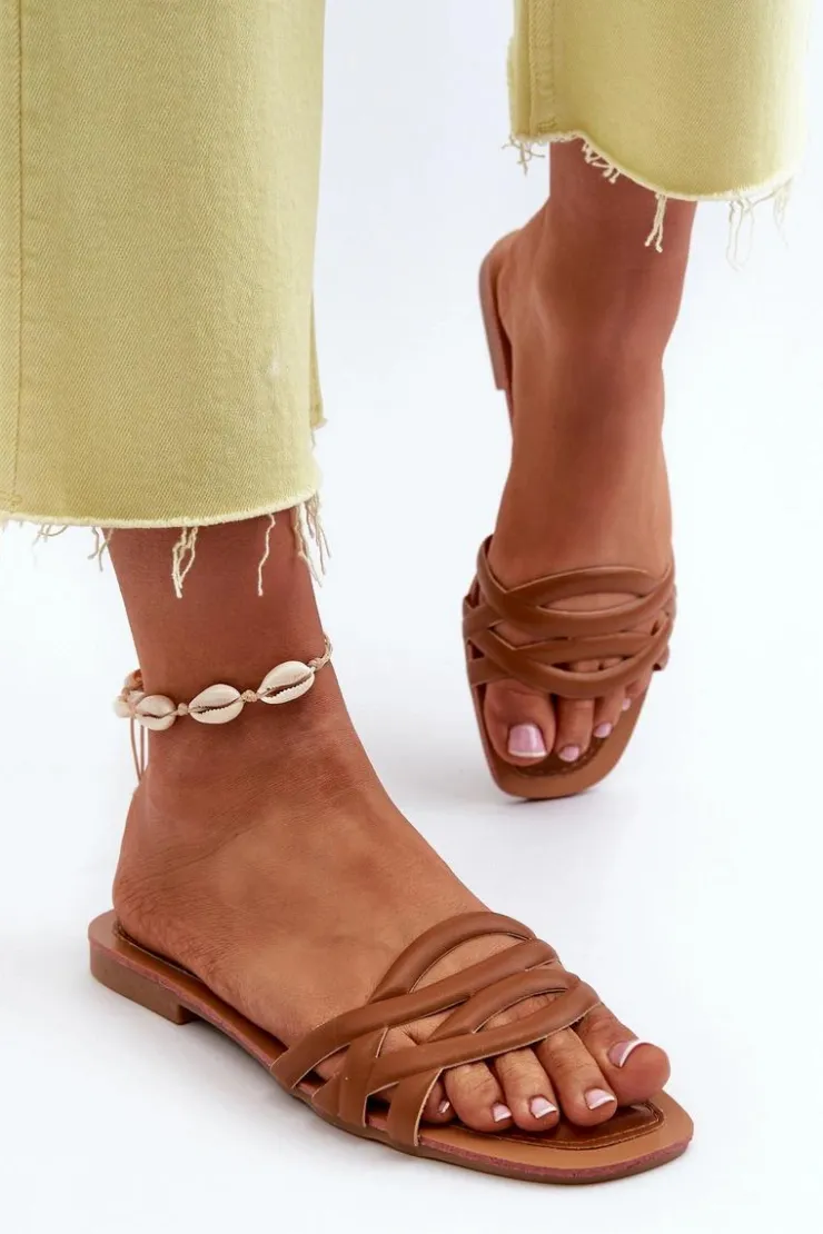 New Boto Klapki Damskie Eko Skórzane Na Płaskim Obcasie Brązowe Moldela Brązowy