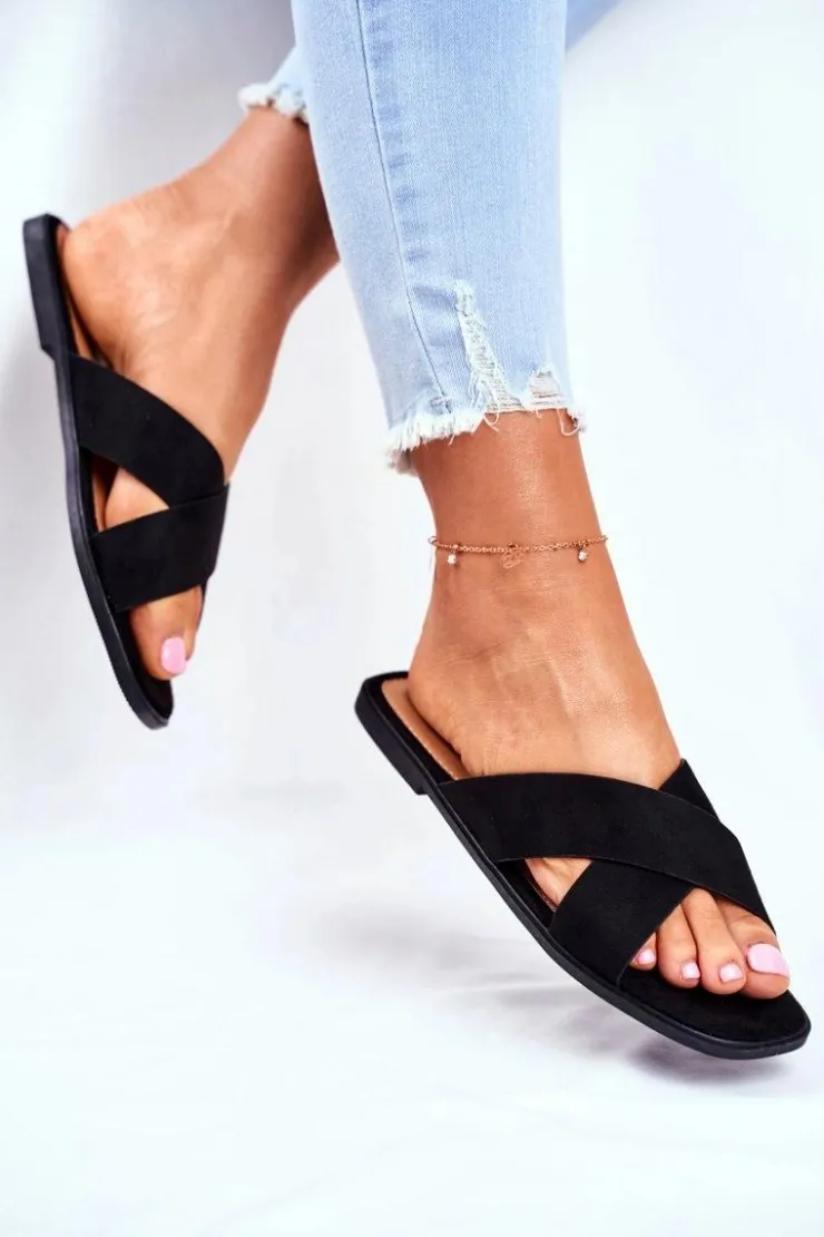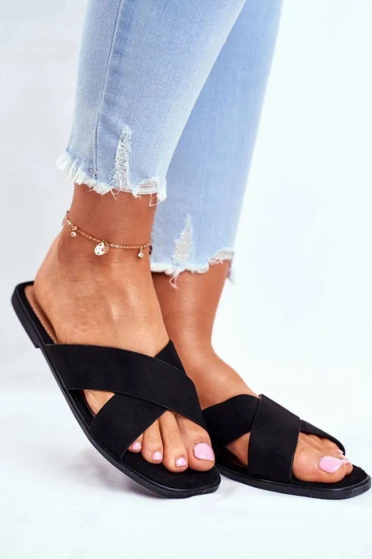 New Boto Klapki Damskie Paski na Krzyż Czarne Philippines