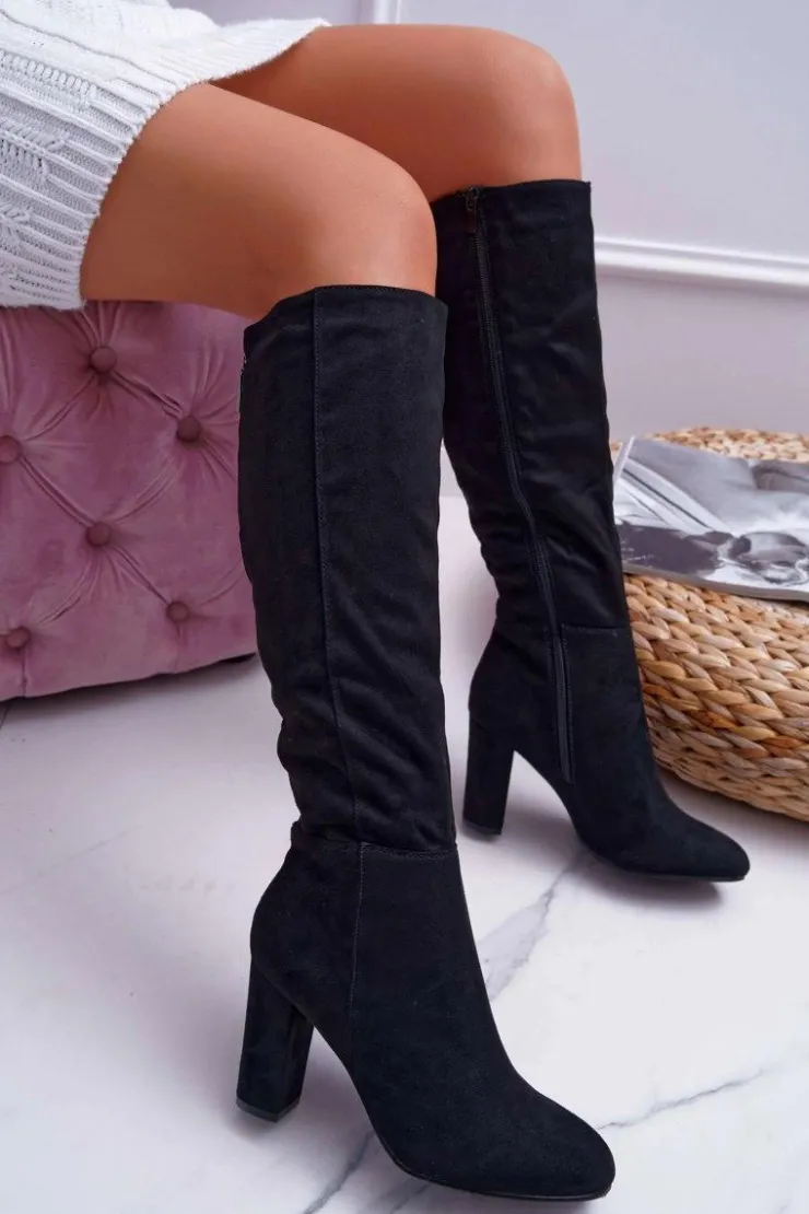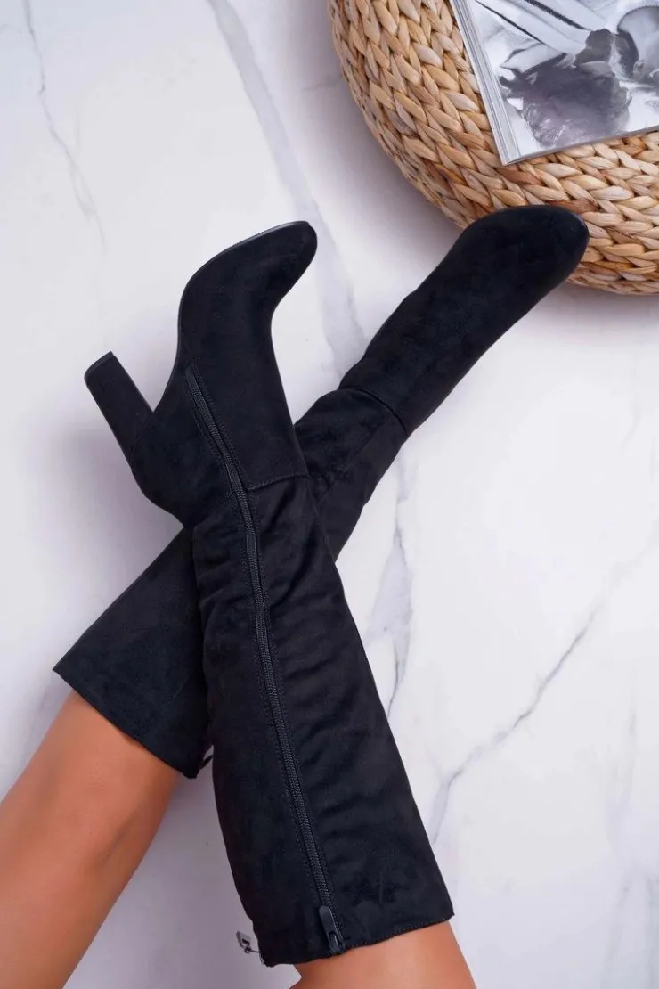 New Boto Kozaki Damskie Na Słupku Zamszowe Czarne Classy