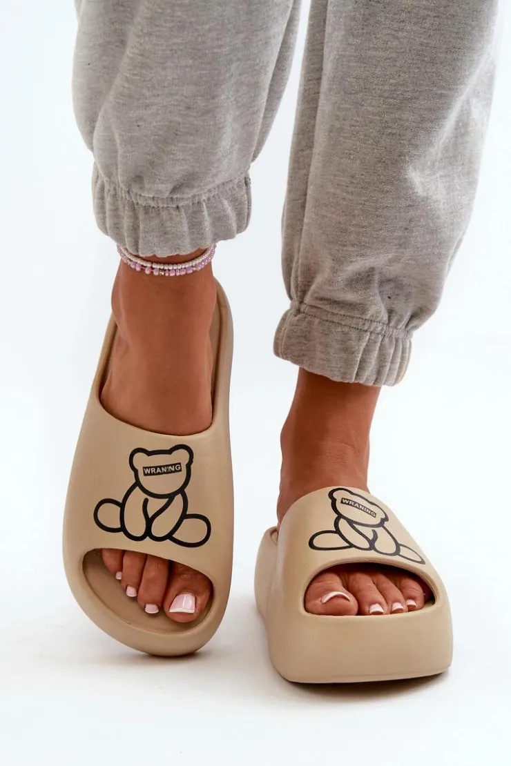 Lekkie damskie klapki na basen wykonane z piankowego tworzywa. Osadzone na masywnej podeszwie. Te urocze klapki zdobi nadruk z motywem misia, który dodaje im wyjątkowego charakteru. Idealne do codziennego użytku na, łączą wygodę i styl w jednym. Przy wyborze rozmiaru prosimy sugerować się tabelą rozmiarów.